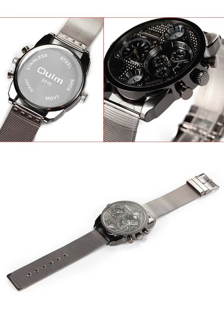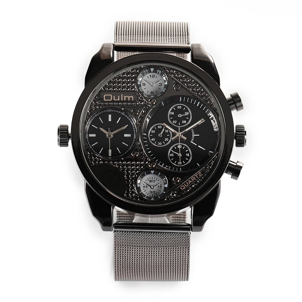 Часы Oulm HT9316 Мужские кварцевые с двумя часовыми поясами