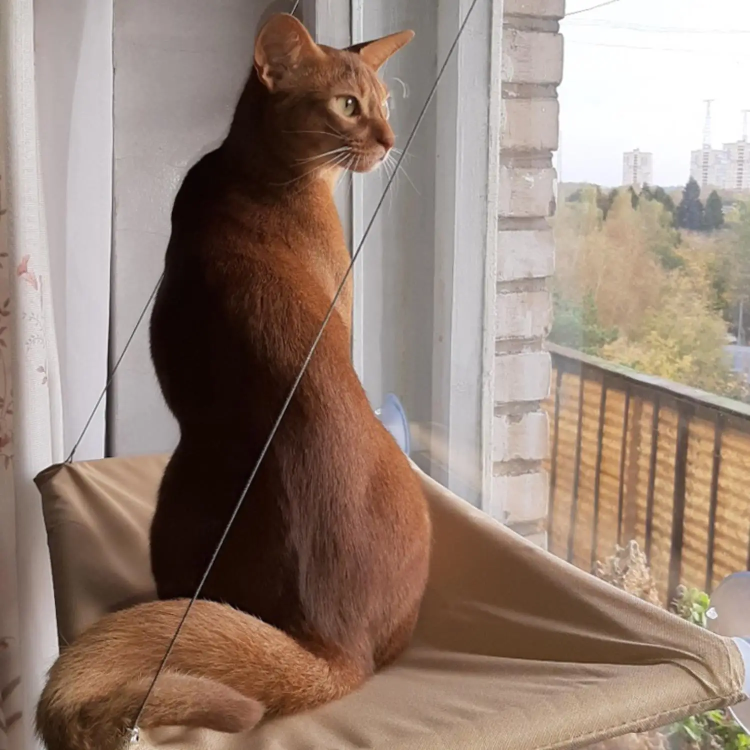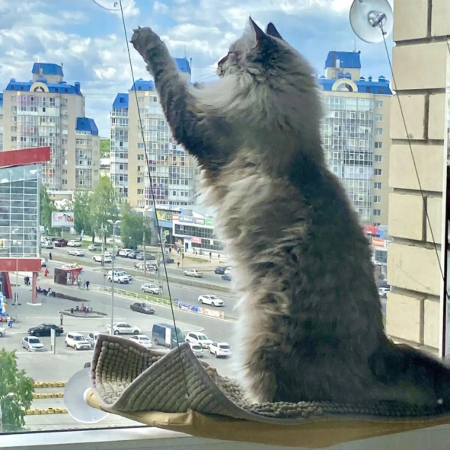 Уютный гамак понравится кошке, придавая ему новую высокую точку зрения за улицей и квартирой. В конце концов, мы все знаем, как кошки любят лазить выше и смотреть там. Удобное крепление в виде присосок позволяет не только легко установить кровать на окно, но и, при необходимости, быстро удалить ее, Не повреждая и не пачкаясь стекло присоска s держится очень плотно из-за вакуума, образованного между присоской и поверхностью окна.