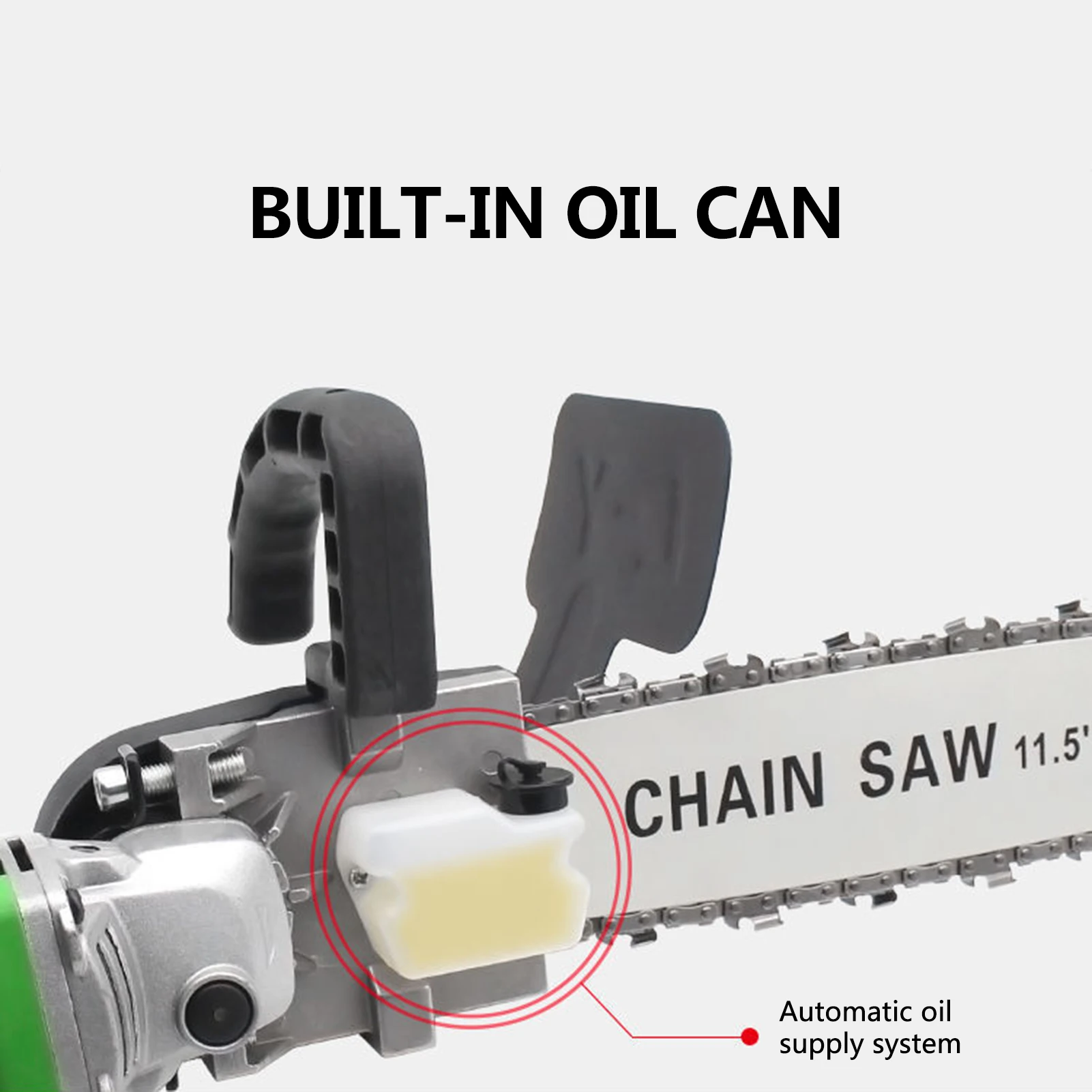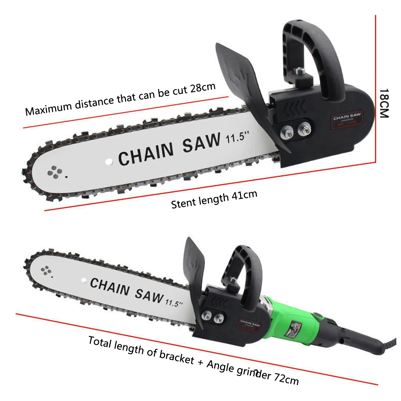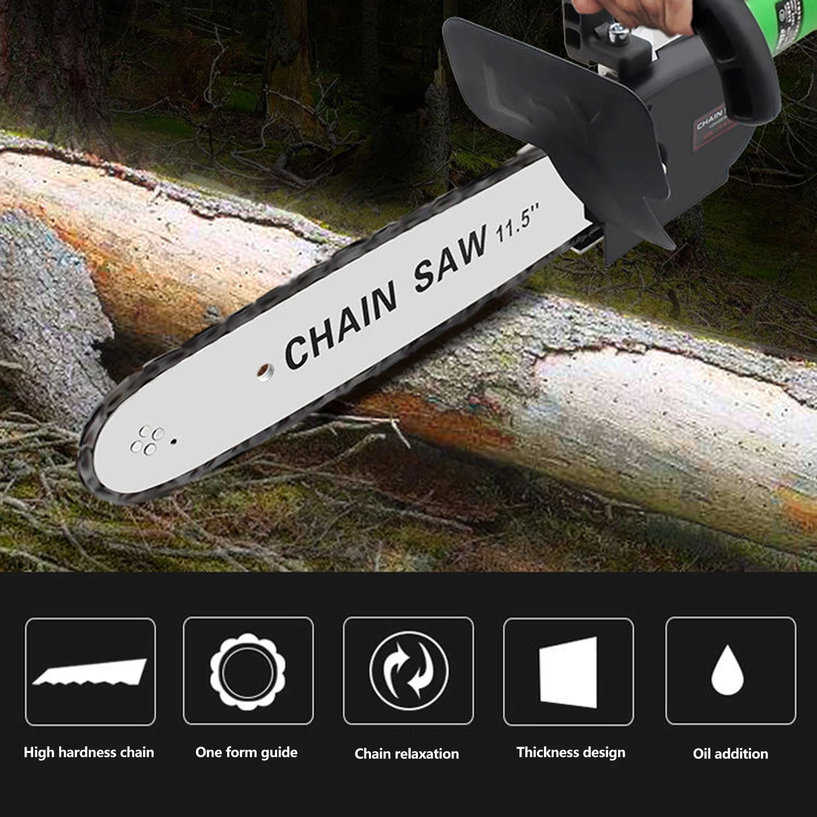 Угловая шлифовальная машина Модифицированная Электрическая цепная пила, Интегральная формовочная направляющая пластина, высокая твердость цепи, регулируемая герметичность цепи, безопасная защита утолщение перегородки, визуальный масляный бак, легко резать металл, дерево, стекло и другие материалы, практичный и удобный. Особенности:Закалка жесткой цепи, предотвращает разрыв, высокая твердость, прочный износостойкий, гладкая резка.Прочная Направляющая Пластина для литья, технология холодной прокатки, без сварки, без трещин.Регулировка натяжения цепи, поверните отвертку влево и вправо для регулировки натяжения цепи.Безопасная защита утолщенная перегородка, безопасная защита во все времена, чтобы предотвратить брызги щепы.Встроенная масляная банка, автоматическая система подачи масла, Эффективная смазка, отсутствие утечки масла, снижение износа цепи.Максимальное расстояние резки составляет 28 см, легко резать металл, дерево, стекло и другие материалы.Встроенная большая скорость работы двигателя из чистой меди, быстрая скорость вращения.Оснащен аксессуарами и установочными инструментами, одна машина двойного назначения, эффективная и удобная. Характеристики:Тип:С маслом Can Тип * 1 цепьС маслом Can Тип * 2 цепьБесплатная установка универсальный тип * 1 цепьБесплатная установка универсальный тип * 2 цепи1 * Оригинальная цепочка (опционально)Скорость без нагрузки: 11000 об/минДлина лезвия: 280 мм/11,02 дюймаМатериал цепной пилы: закалкаПластина Длина: 11,5 мм/0.45inТолщина канала передачи: 2 мм/0,08 дюймаКабель энергии Длина: 1,8 м/5.91ftПосылка Вес: 1000 г/35,37 унцийРазмер посылка: 220*180*110 мм/8,66*7,09*4,33 дюймов Примечание:Этот продукт должен использоваться с угловой шлифовальной машиной типа 100 (поддержка электрической цепной пилы не может использоваться отдельно)Угловая шлифовальная машина не входит в посылка. Пожалуйста, купите его самостоятельно, если вам это нужно Упаковочный лист:1 * Электрическая цепная пила1 * цепь1 * Масляный баллон1 * шестигранный ключ1 * Руководство по установке