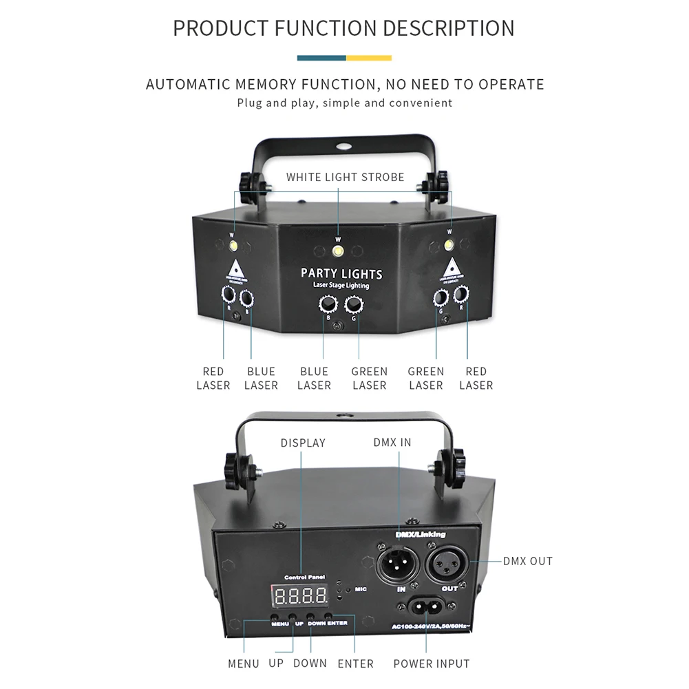 9-глазный RGB-лазер, светодиодный светильник для дискотеки, сценического проектора, голосовое дистанционное управление, освещение для танцевального бара, KTV, клуба, вечеринки, сценисветильник свет