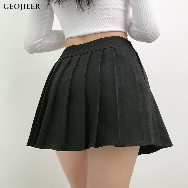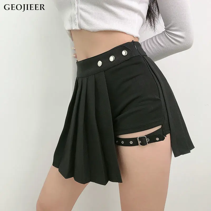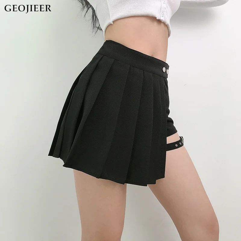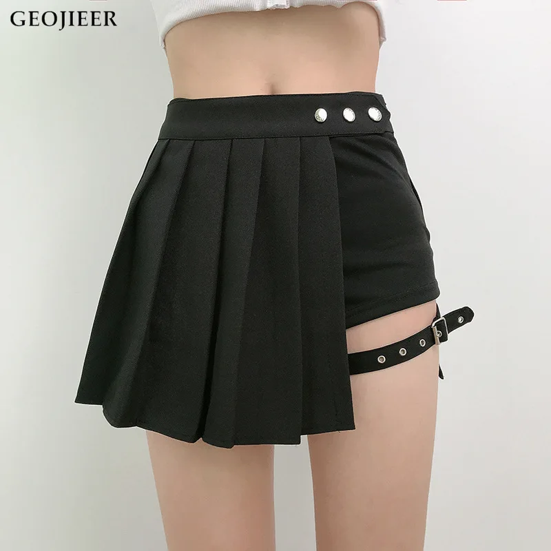 Летние клетчатые юбки в стиле Харадзюку, ассиметричные черные юбки в стиле панк с высокой талией, плиссированные готические юбки до локтя для девушек