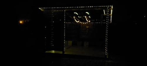 Гирлянды - огонь! Изящно подчёркивают контуры. Просто намотал на прикрученные саморезы по периметру. Не ждите что гирлянды-лампочки будут что-то освещать, они как предмет декора, в полной темноте еле-еле освещают пространство, но так даже уютнее! Закажу ещё заранее на новый год!