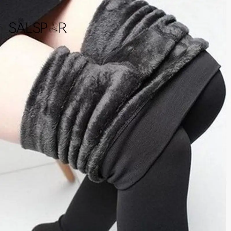 SALSPOR Зимние теплые брюки, женские бархатные леггинсы с высокой талией, облегающие брюки, женские эластичные теплые леггинсы