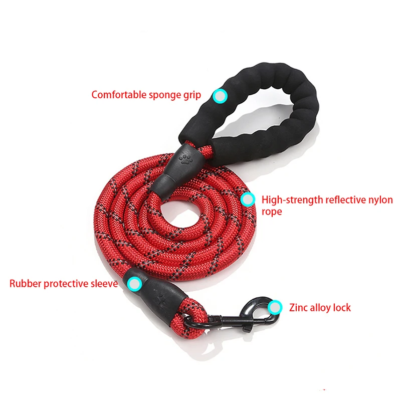 Светоотражающий прочный поводок для собак, длиной 1,5 м, с удобной мягкой ручкой