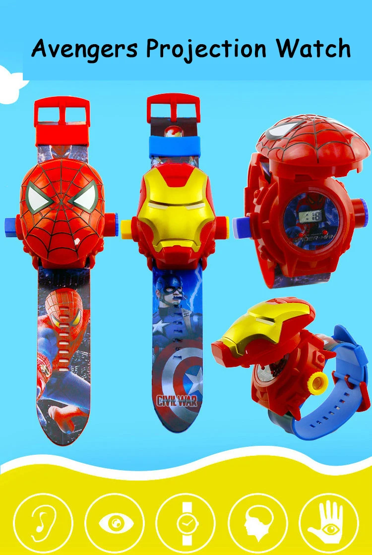 Детские флип-часы Disney с 3d-проекцией, часы Marvel Мстители, Человек-паук, Железный человек, Капитан Америка, электронная игрушка, детские наручные часы