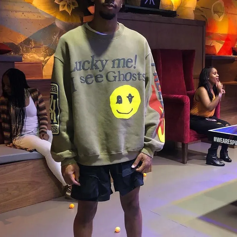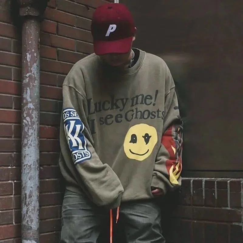 Толстовка Kanye West с надписью Lucky Me I See Ghost, Свитшот со см...