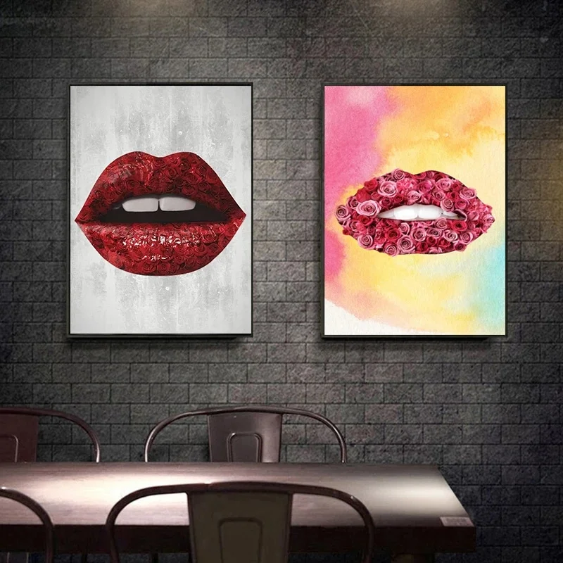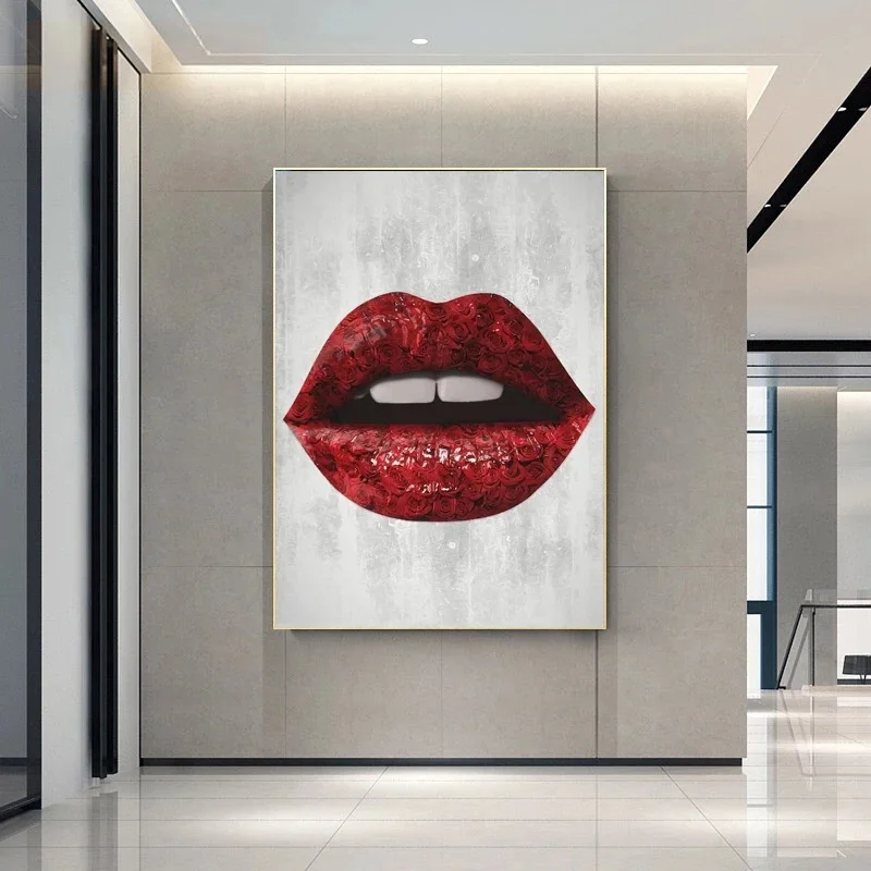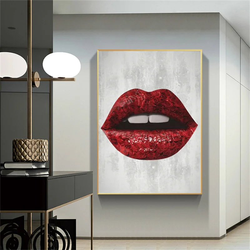 Картина на холсте с изображением девушки сексуальных губ, красные губы, розовые розы и деньги, современные настенные картины, домашний декор, картины для украшения спальни