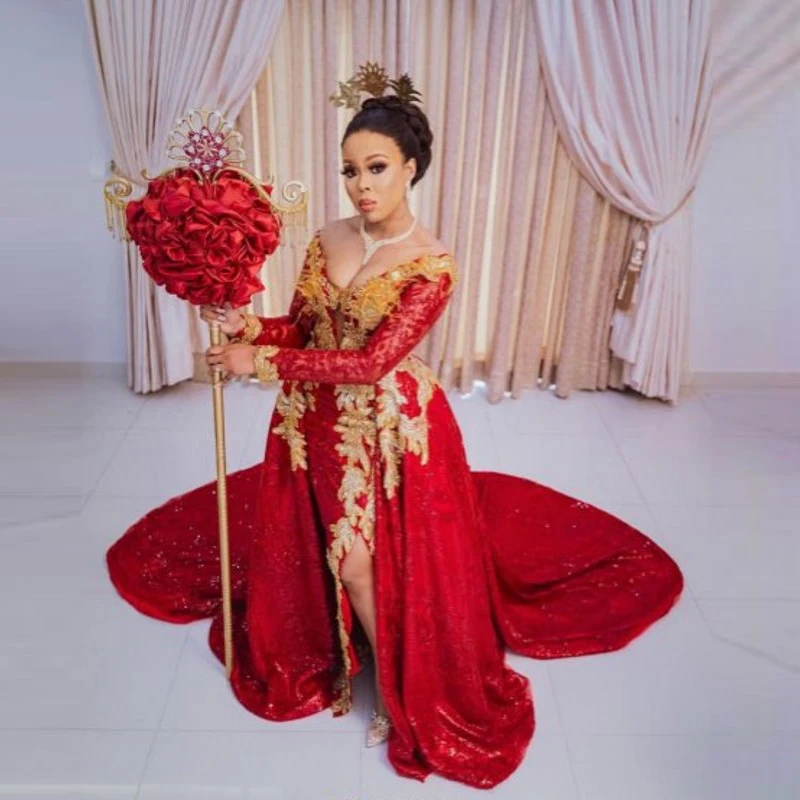 Оригинальные красные платья для выпускного вечера, торжественное платье, вечерние платья с блестками и длинным рукавом, вечерние платья с аппликацией
