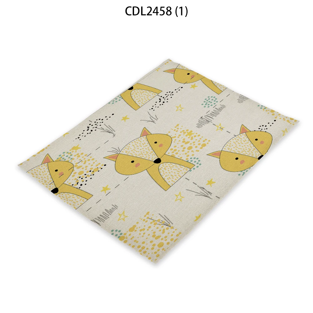 Милый мультяшный коврик для обеденного стола, подставка под напитки в виде кошки лисы, 32x42 см, прямоугольные подставки, коврик для посуды, кухонный декоративный коврик
