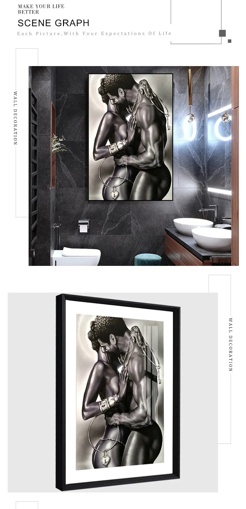 Холст с изображением обнаженной пары, влюбленных, современный черный Африканский человек и женщина, Настенная картина, печать, декор для комнаты, плакат