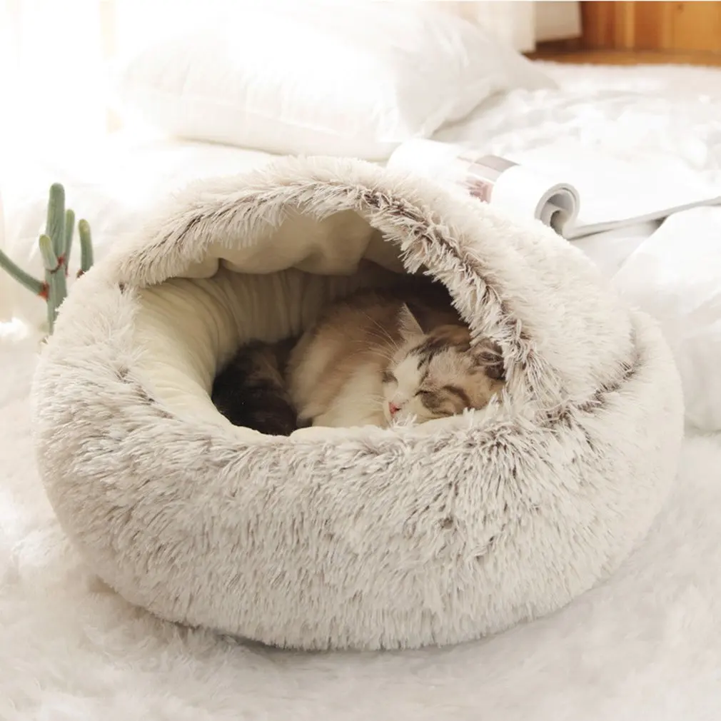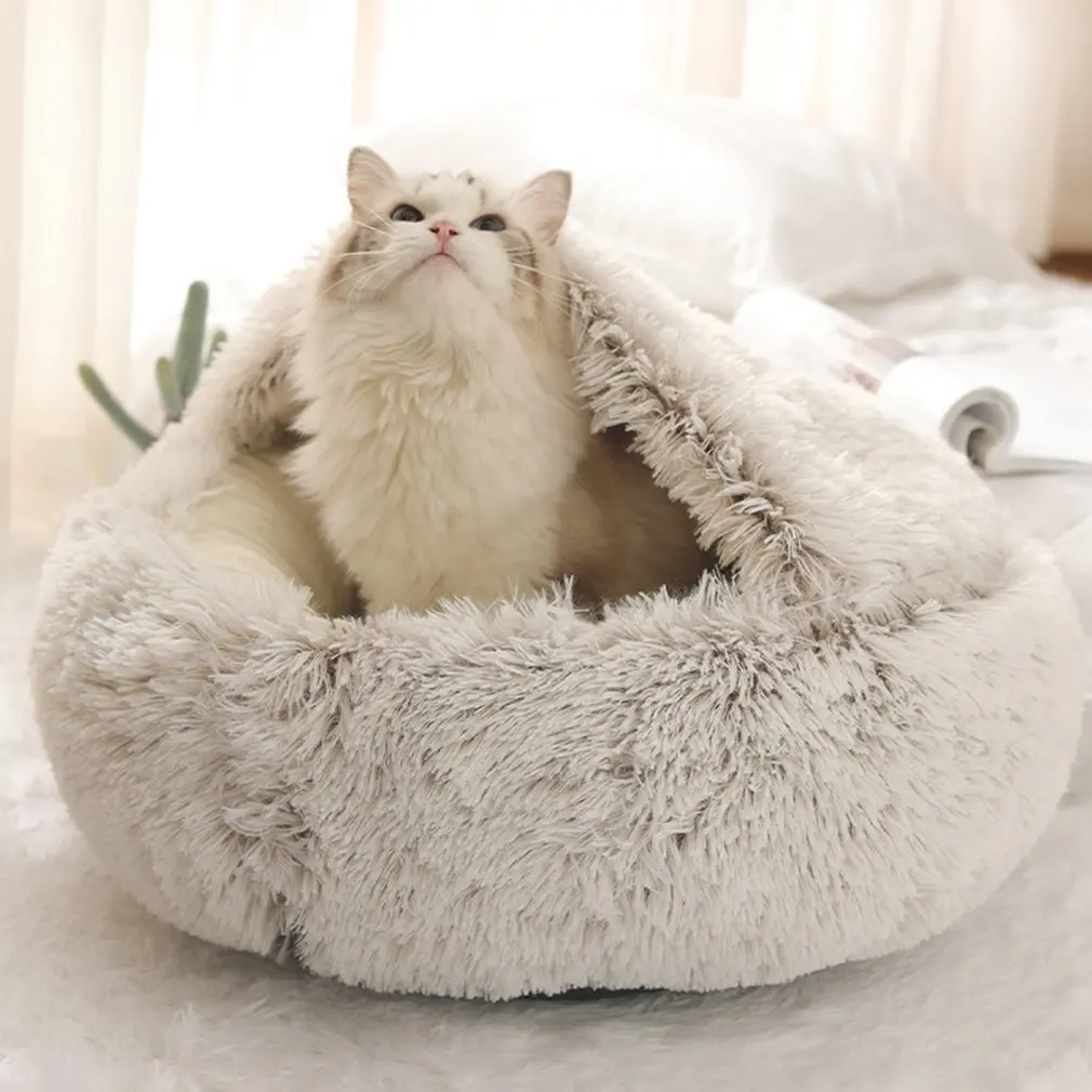 Новая стильная кровать для домашних животных, собак, кошек, детской комнаты, теплая кровать, мягкая длинная плюшевая кровать для маленьких собак и кошек, гнездо 2 в 1, съемная подушка