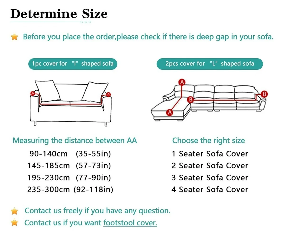 Особенности: 1. Отборная качественная ткань, удобная, эластичная, дышащая, прочная 2. Изготовлен из растягивающегося материала, идеально подходит для большинства диванов 3. Технология окрашивания реактивной печати, здоровая и Экологически чистая, не выцветает 4. Легко установить и разделить, просто накрыть диван, и вставить поролоновые стержни в диван зазор, превратите ваш старый диван в новый в течение нескольких минут. 5. Защитите ваш диван от пятен, шерсти домашних животных, повреждений и пыли 6. Доступно в 4 размерах, много цветов на выбор 7. Подходит для дома, отеля и офиса и любого необходимого дивана Размер: Одноместный чехол для дивана: подходит для дивана размером 90-140 см Двухместный Чехол для дивана: подходит для дивана размером 145-185 см Трехместный Чехол для дивана: подходит для дивана размером 190-230 см Четырехместный чехол для дивана: подходит для дивана размером 235-300 см Применимый диван: безрукий диван, подлокотник диван, l-образный диван, секционный диван Пожалуйста, измерьте ваш диван, включая подлокотник, затем выберите размер, если вы не измерите его, чехол для дивана будет меньше, чем ваш диван. В комплект входит: 1 чехол для дивана Примечание: товар включает только 1 диван-чехол, не включая наволочку. (Цена за единицу указана только за 1 шт. чехол для дивана, не включает наволочку или другие аксессуары, если вы хотите наволочку, вы должны разместить заказ отдельно.) Пожалуйста, обратите внимание: 1. Этот чехол для дивана применим к дивану, который есть зазор, между сиденьем со спинкой и подлокотником. (Пожалуйста, убедитесь, что ваш диван имеет глубокий зазор, чтобы просунуть поролоновые стержни перед покупкой. Наш чехол для дивана не подходит для дивана с мелким зазором.) 2. Пожалуйста, измерьте ваш диван, включая подлокотник, затем выберите размер, если вы не измерите его, чехол для дивана будет меньше, чем ваш диван. 3. Возможна погрешность в 1-3 см при ручном измерении, в разных странах разные размеры, пожалуйста, проверьте это перед покупкой. 4. Из-за проблем с транспортировкой на большие расстояния продукт будет немного складываться, он может быть не таким плоским, как на картинке, но доза не влияет на использование. 5. Поскольку разница между различными мониторами, изображение может не отражать фактический цвет товара. Мы гарантируем, что рисунок такой же, как показано на фотографиях. Какой цвет вы не можете выбрать, пожалуйста, свяжитесь с нами.