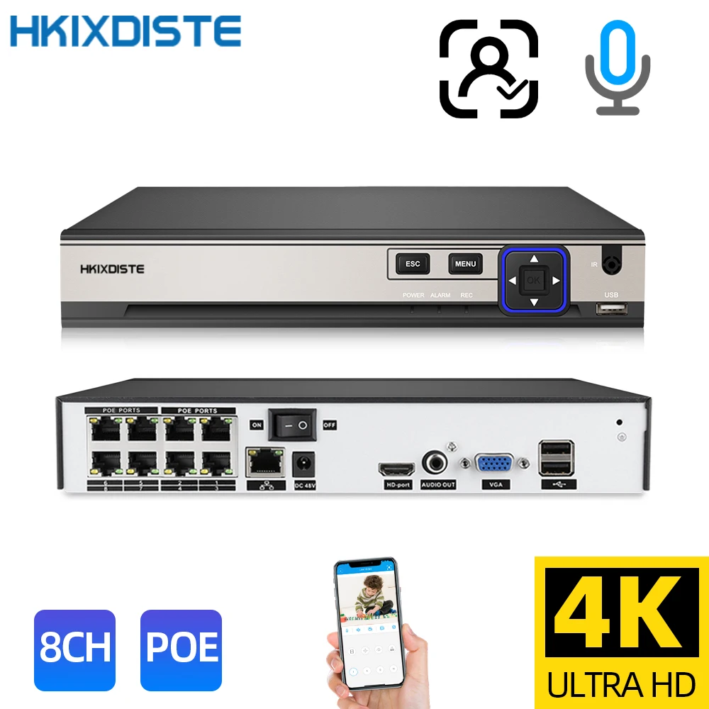 HKIXDISTE XMeye 8CH 4K POE NVR Распознавание лиц H.265 + сетевой видеорегистратор 247 записывающая IP камера P2P система