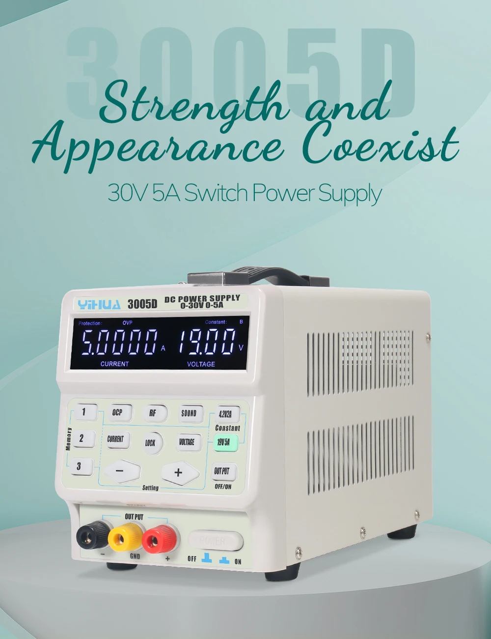 Источник питания YIHUA, 150 Вт, 3005D, 5 А, 30 В постоянного тока, регулируемый лабораторный, цифровой импульсный источник питания с программным управлением