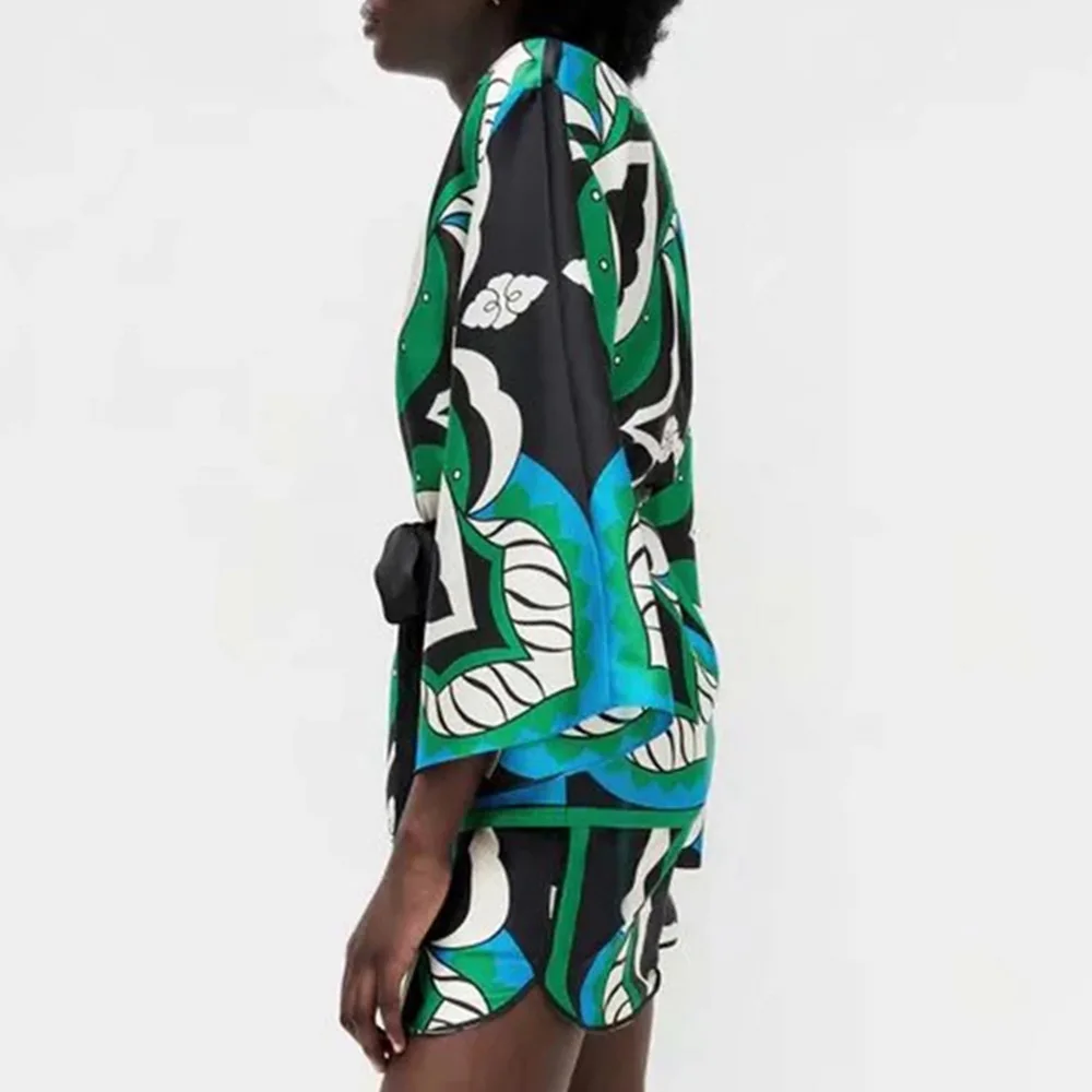 Костюм-шорты-бермуды для женщин, летние шорты с зеленым принтом и в...