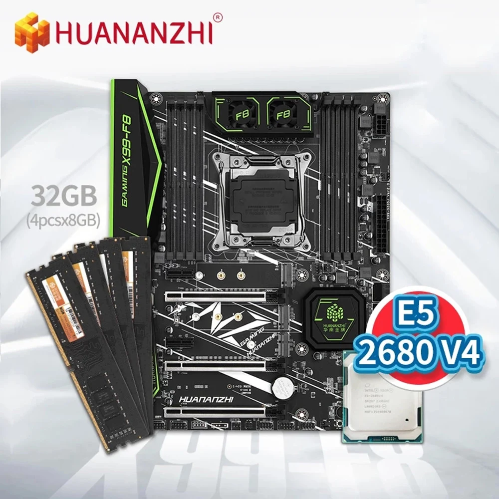 Материнская плата HUANANZHI X99-F8 с Intel XEON E5 2680 v4 с 4*8G DDR4 без ECC памяти, комплект combo kit NVME SATA 3,0 USB 3,0