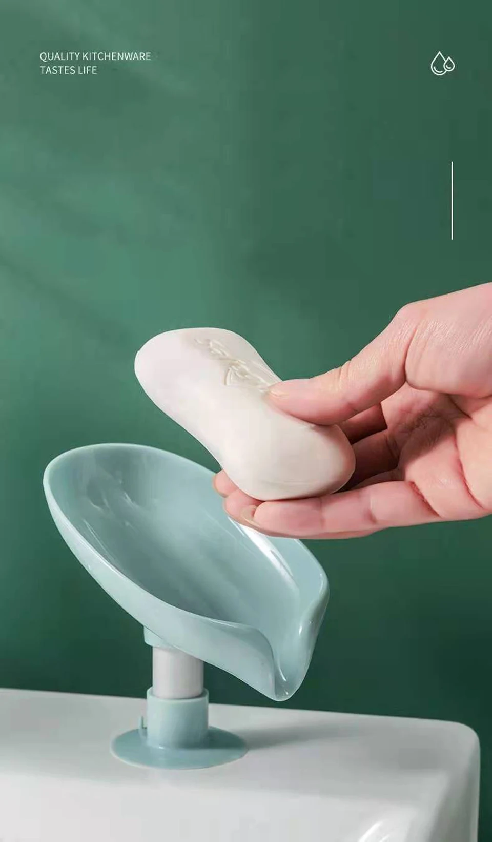 Ящик для мыла в форме листа, без перфорации, на присоске, сливная п...