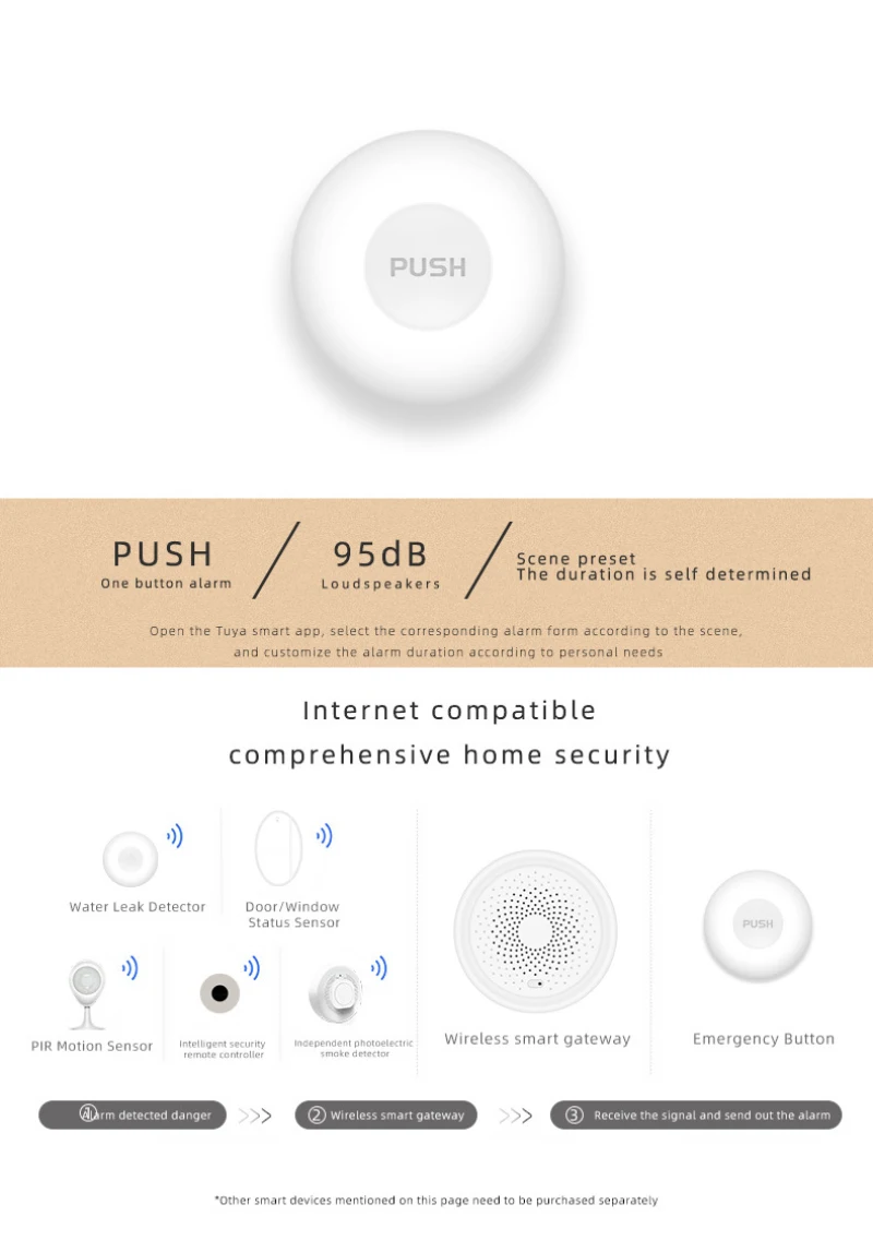 Центр дизайна в форме сада оснащен отдельной кнопкой сигнализации из мягкого силикона. Общий цвет-белый. Нажмите кнопку, чтобы мгновенно отправить сигнал тревоги, который может быть легко использован пожилыми/детьми.