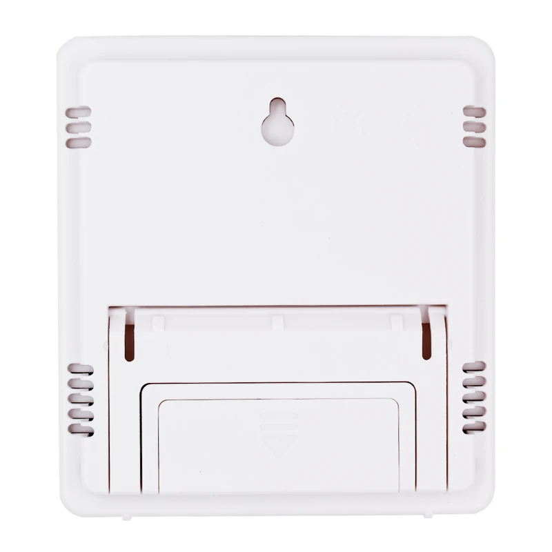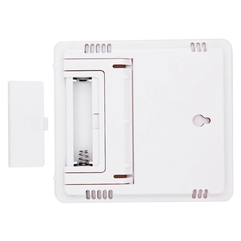 100% новый и высокое качество Большой персональный ЖК-дисплей, легко читается Низкое энергопотребление Отображение температуры, влажности и времени одновременно 2 режима отображения температуры: °C/°F 2 режима отображения времени: 12/24 часа в сутки Макс/мин функция памяти температуры и влажности Функция ежечасного звонка Функция будильника на каждый день Функция отображения календаря (месяц и дата) Встроенная задняя подставка для настольного использования подвесное отверстие для настенного крепления Идеально подходит для дома, офиса, путешествий и школы Характеристики: Диапазон температур: -50 °C ~ + 70 °C (-58 °F ~ + 158 °F) Точность температуры: ± °C (1,8 °F) Разрешение температуры: 0,1 °C (0,2 °F) Диапазон влажности: 10% ~ 99% RH Точность влажности: ± 5% относительной влажности Разрешение влажности: 1% RH Мощность Источник: 1 * ААА (1,5 В) батарея (не входит в комплект) Материал: АБС-пластик Цвет: белый + черный Размеры: 105x97x23мм Вес: 116 г