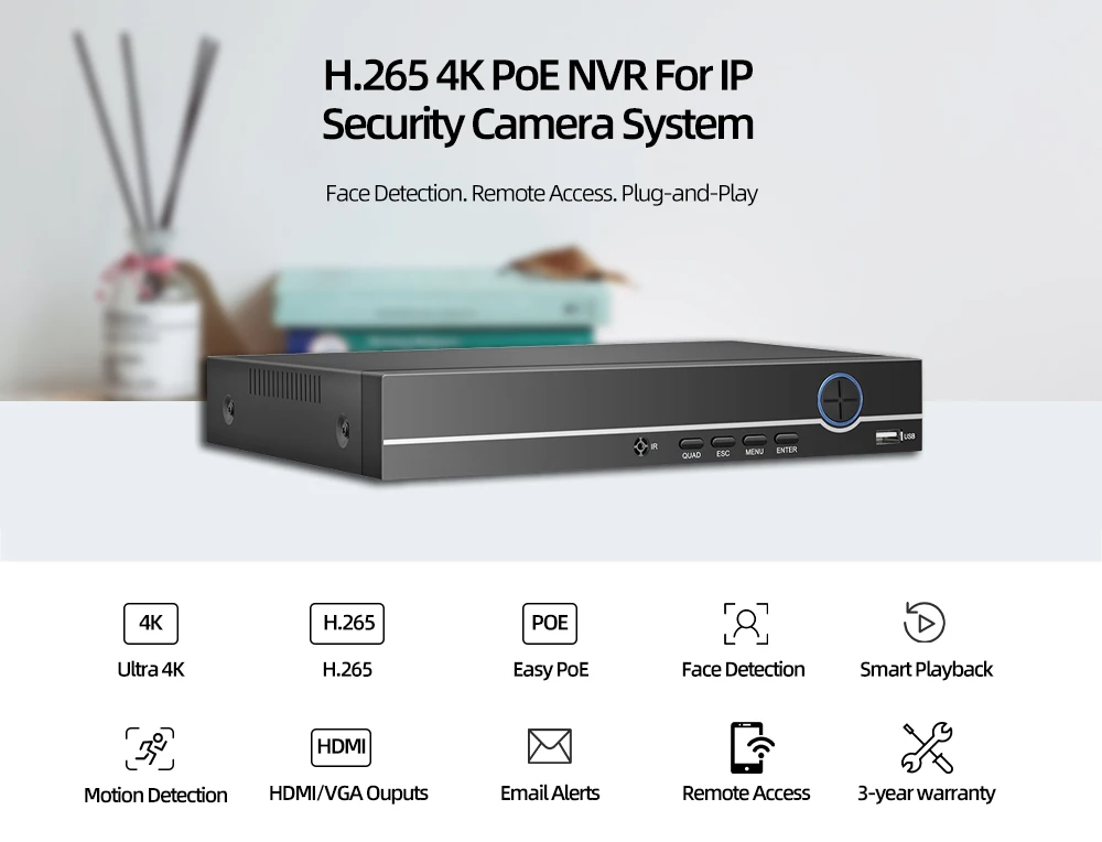 POE NVR More FeaturesFace Record,Face Detection,Face Playback