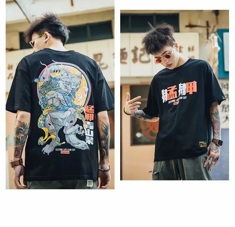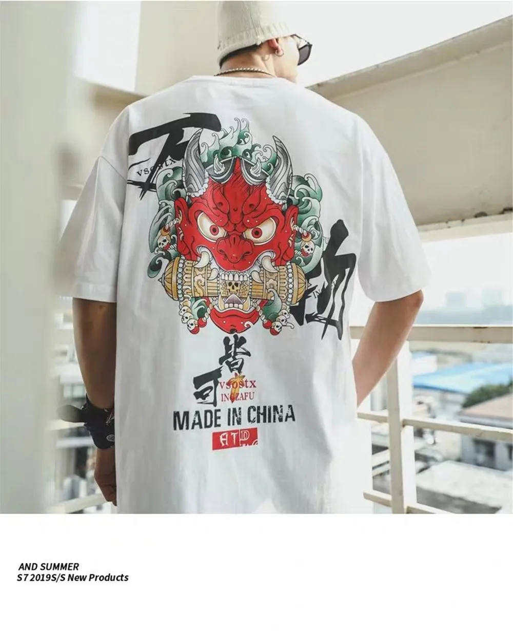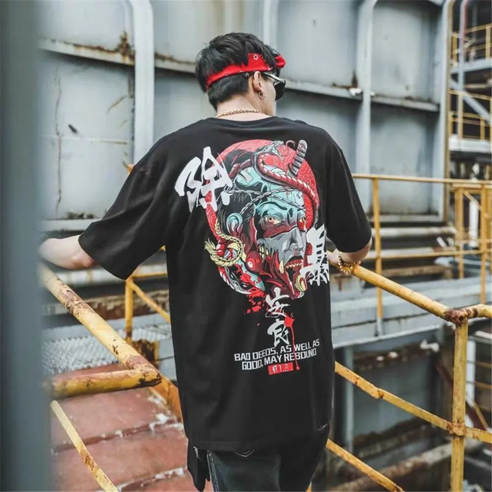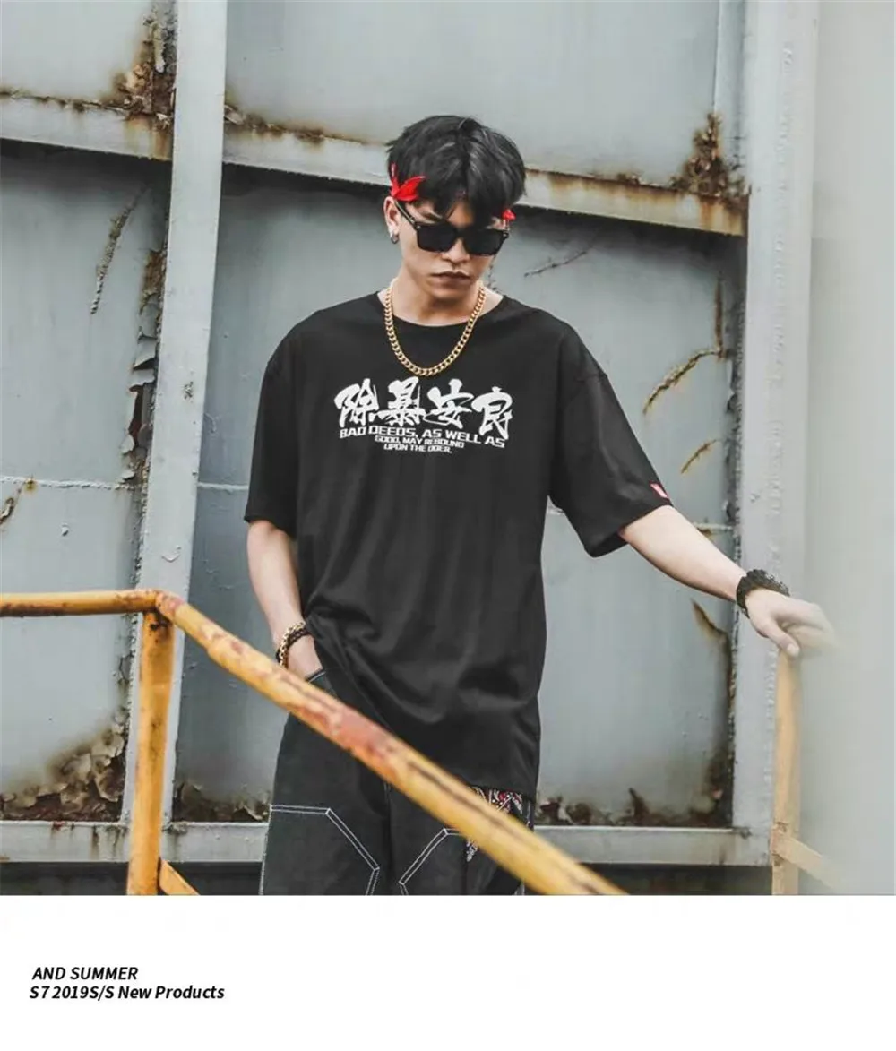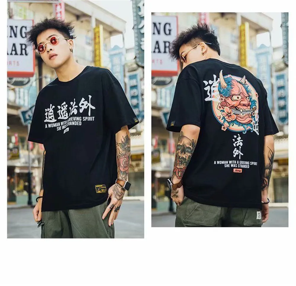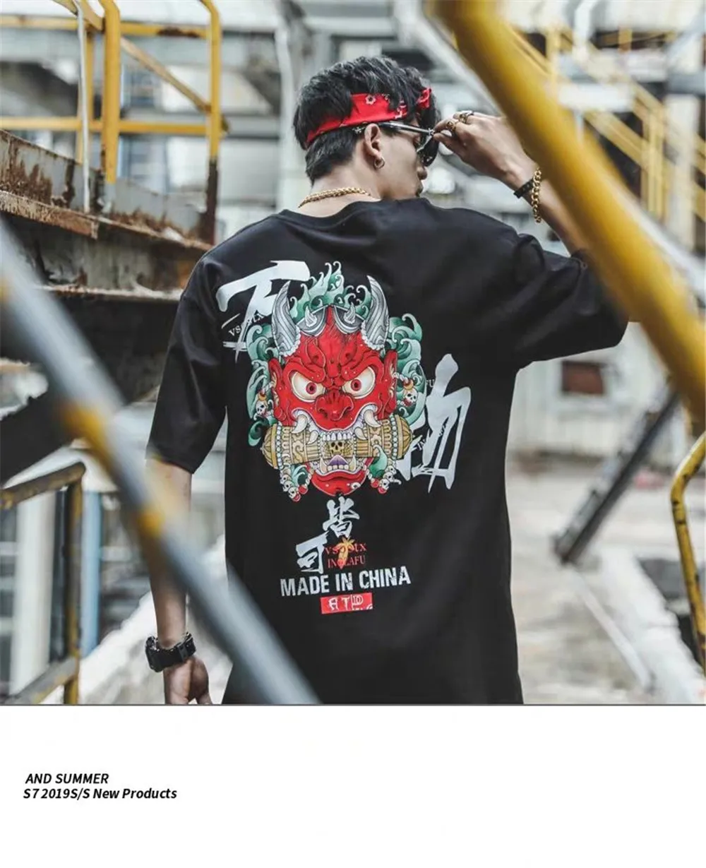 Летняя крутая футболка в стиле панк, Мужская забавная футболка в стиле Харадзюку с дьяволом, Мужская модная японская свободная Готическая футболка в стиле хип-хоп с коротким рукавом для девочек
