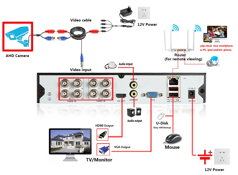 Просмотр видео в режиме реального времени с любого места и в любое время с помощью смартфона, стола или ПК с передовой технологией P2P,Вы можете получить удаленный доступ к вашей системе за считанные минуты или меньше, нет необходимости в переадресации, удаленный доступ никогда не был таким простым!
