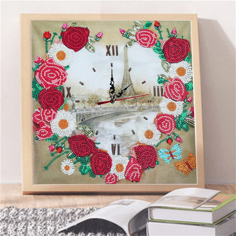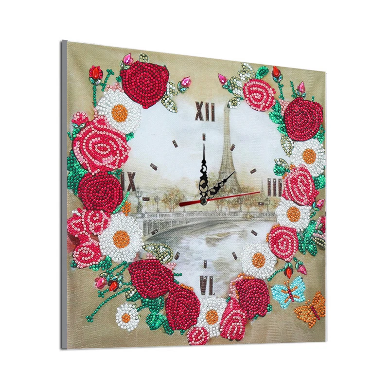 Роза, сделай сам, 5D, специальная форма, Кристалл Стразы, настоящие часы, алмазная живопись, 30x30 см