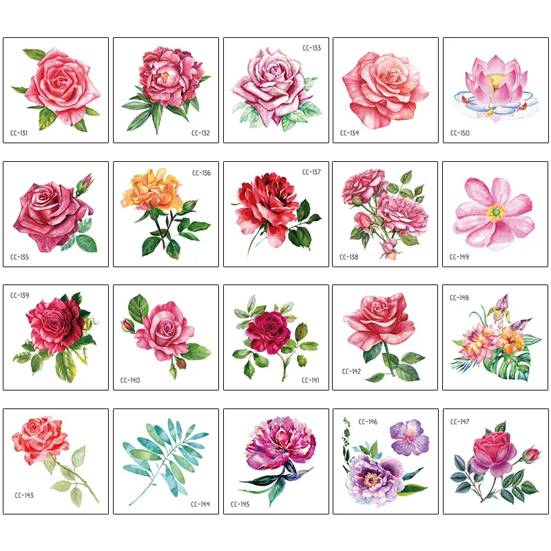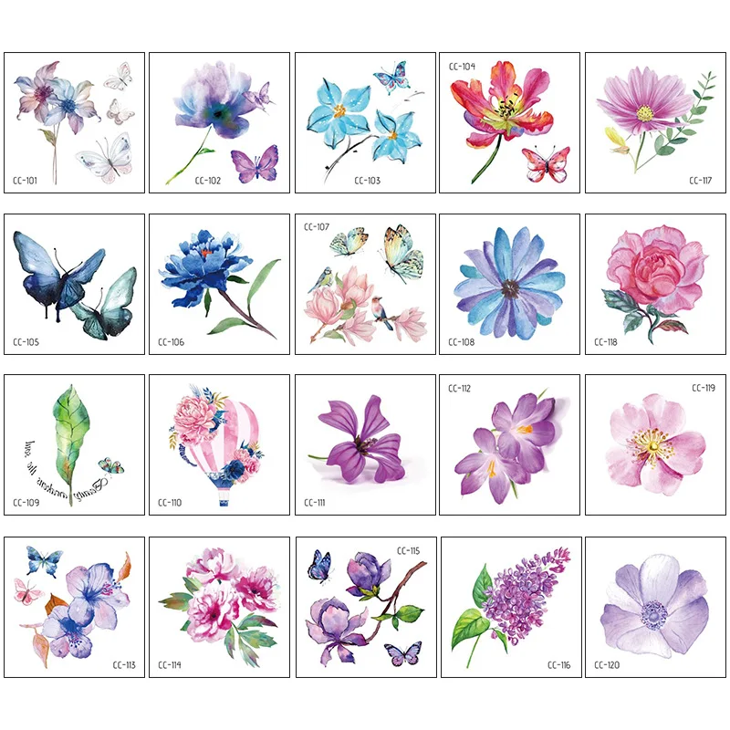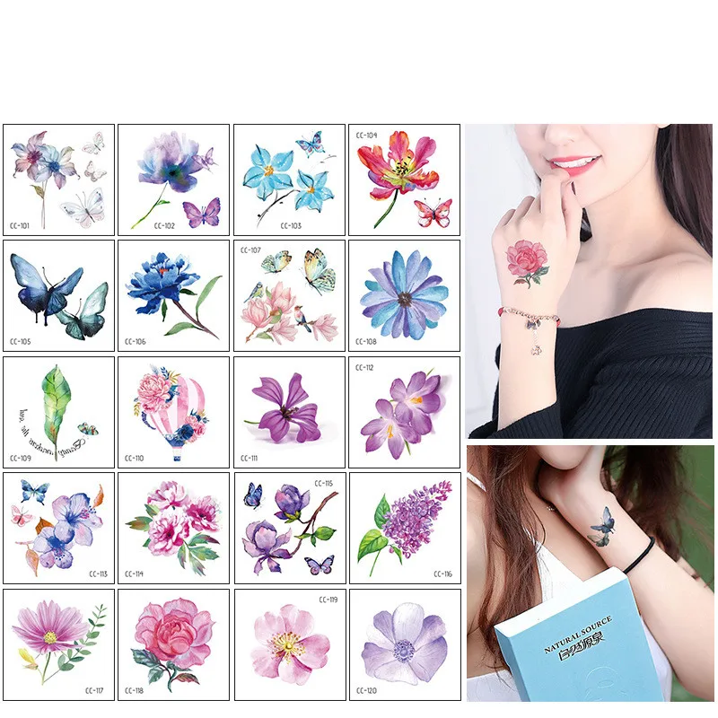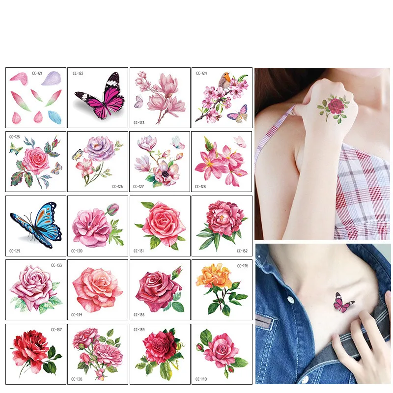 20 шт Временные татуировки стикер для женский боди-арт стикер татуировки 3D бабочка роза цветок перо татуировки водонепроницаемый 6х6см подарки
