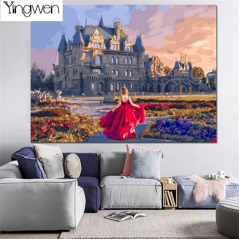 Набор для алмазной живописи 5D сделай сам, картина в виде замка с красным платьем для женщин, полная Алмазная вышивка бисерные картинки, вышивка крестиком, домашний декор, подарок