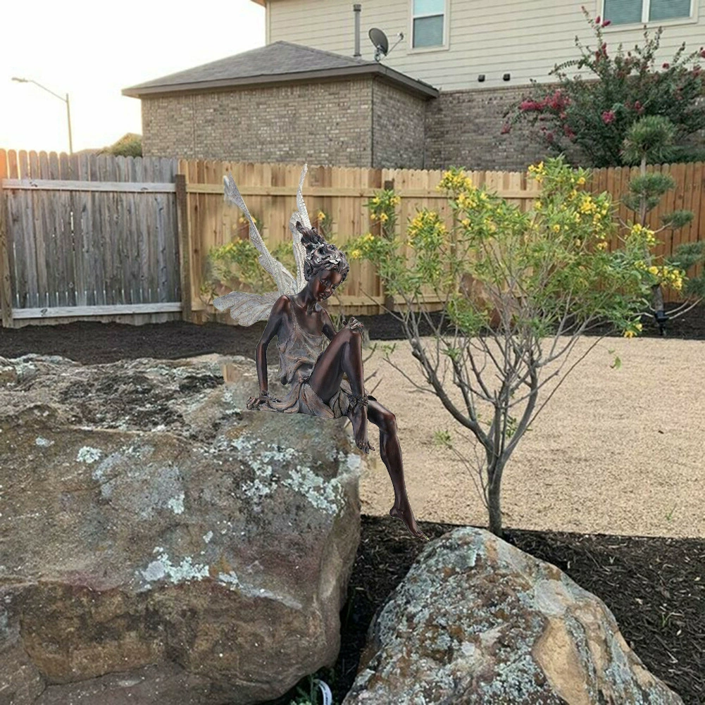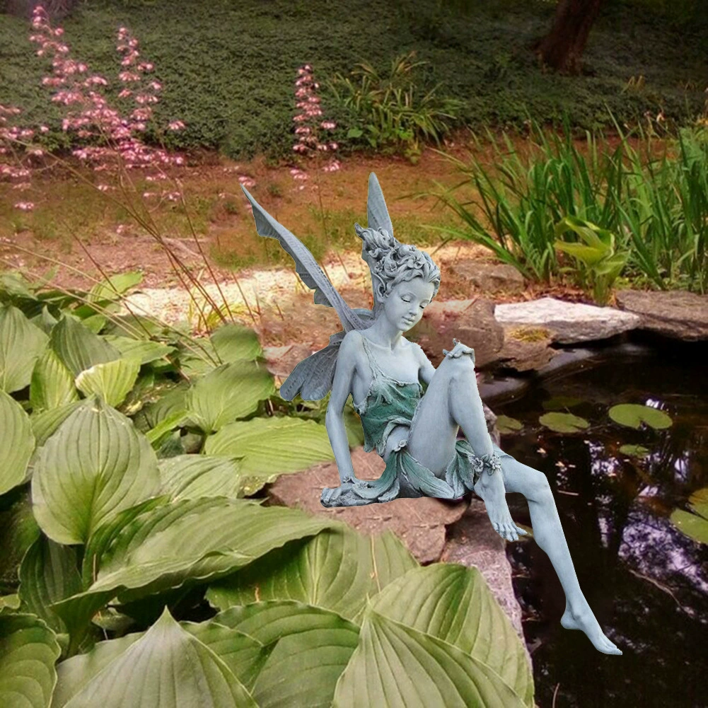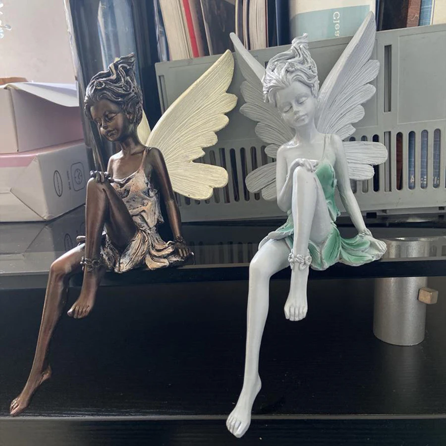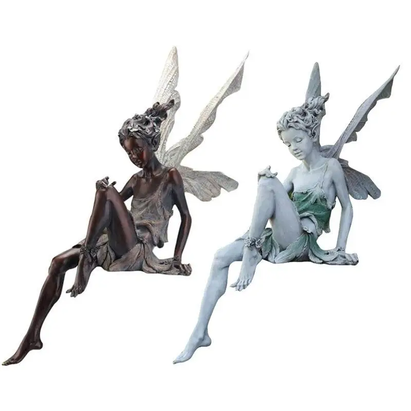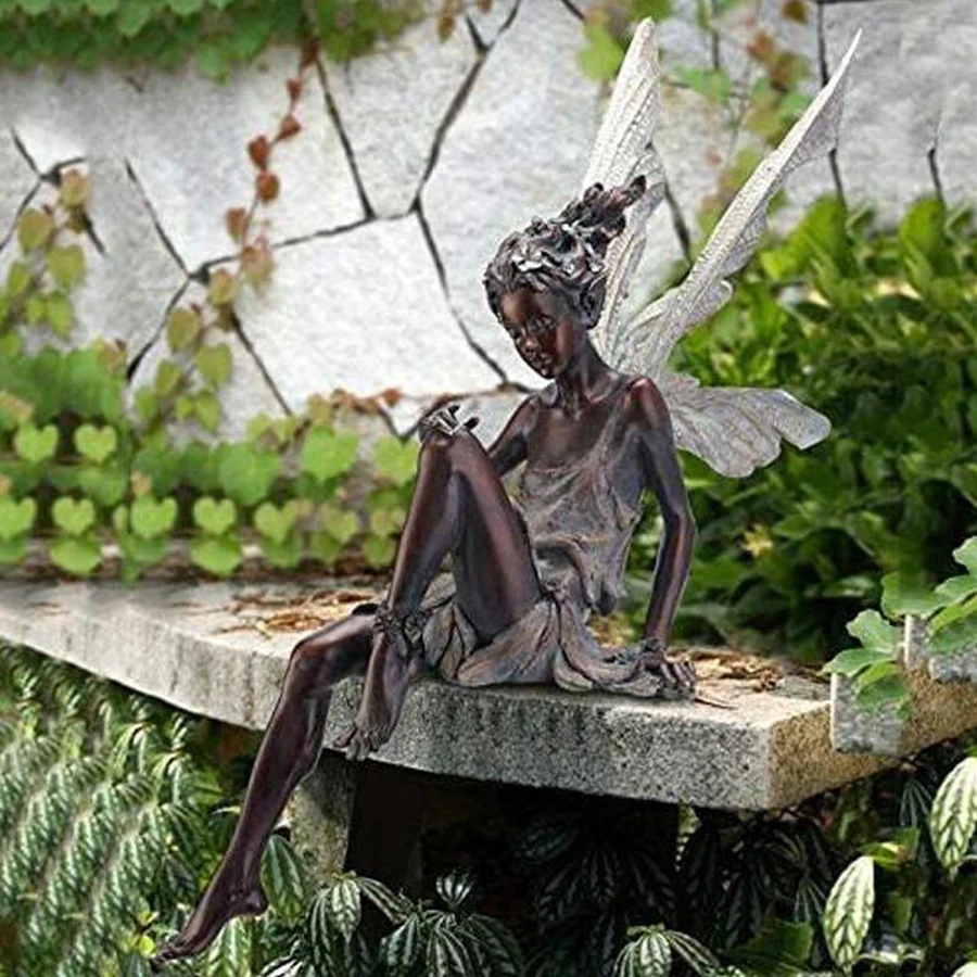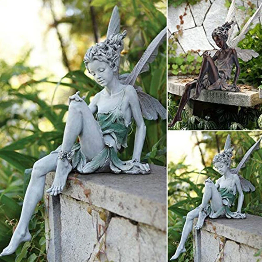 Статуя из смолы, сидящая фея, садовый орнамент, скульптура для крыл...