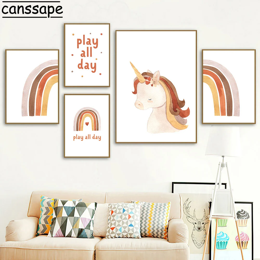 Постеры в скандинавском стиле с изображением Льва и медведя, радужные картины, Постер с единорогом, настенные картины для детской комнаты, украшения для детской спальни