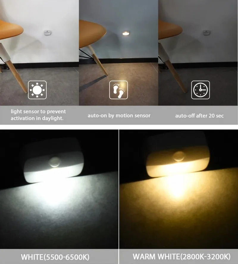 Умный светодиодный ночник с пассивным инфракрасным датчиком движени...