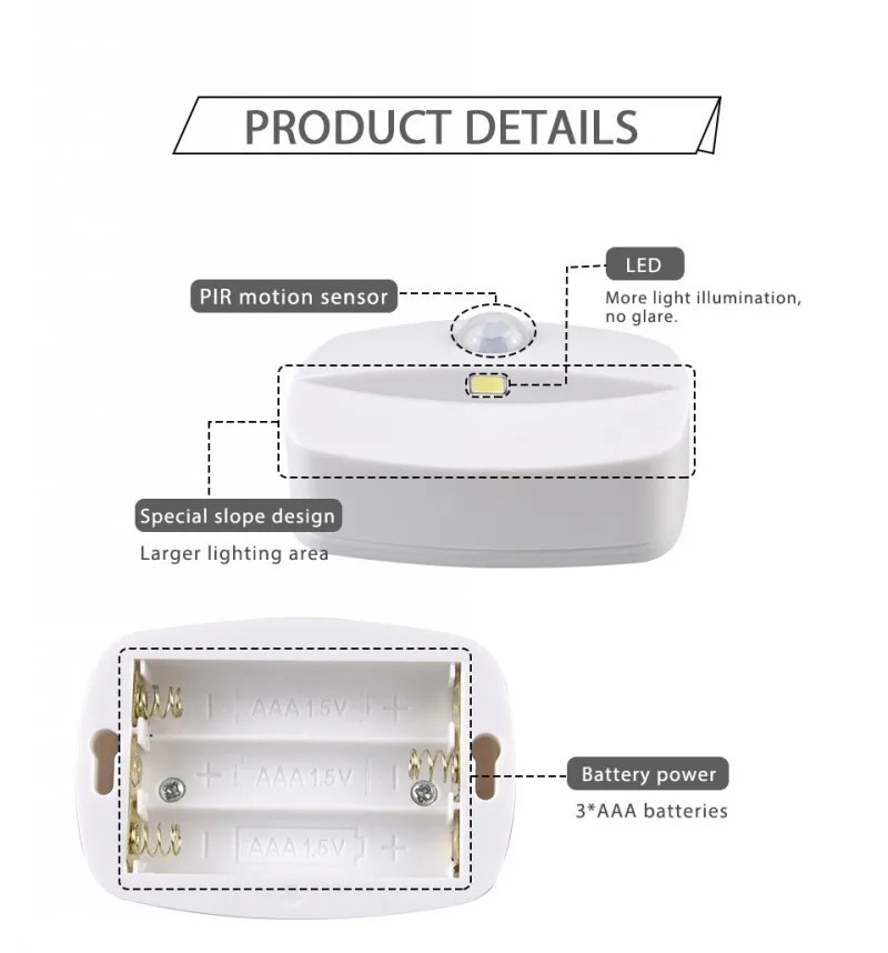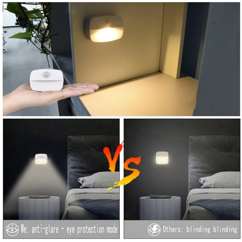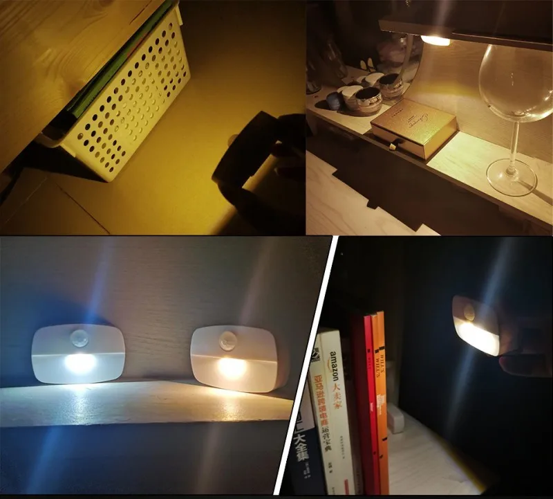 Беспроводная ночная лампа с датчиком движения, светодиодные ночники на батарейках, маленькие ночные светильники для комнаты, коридора, чулана, легкая установка