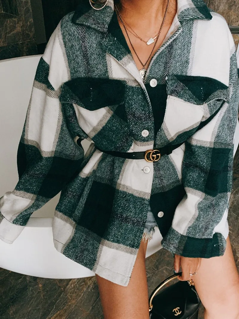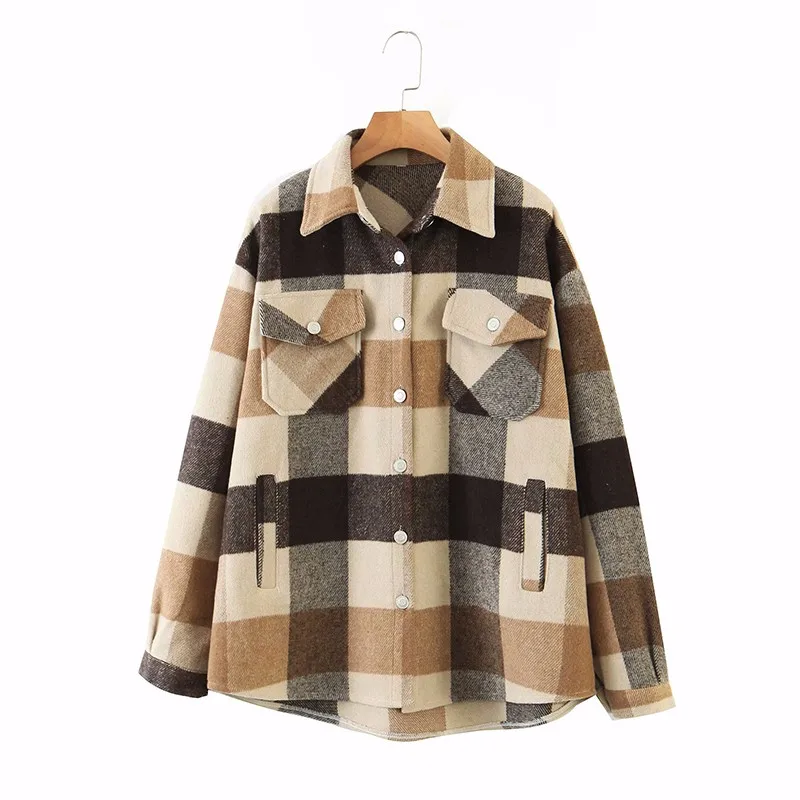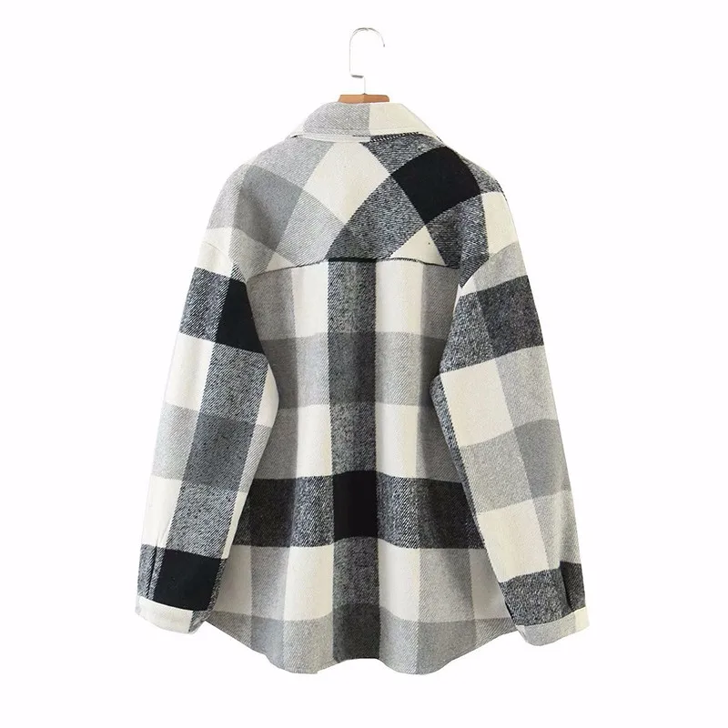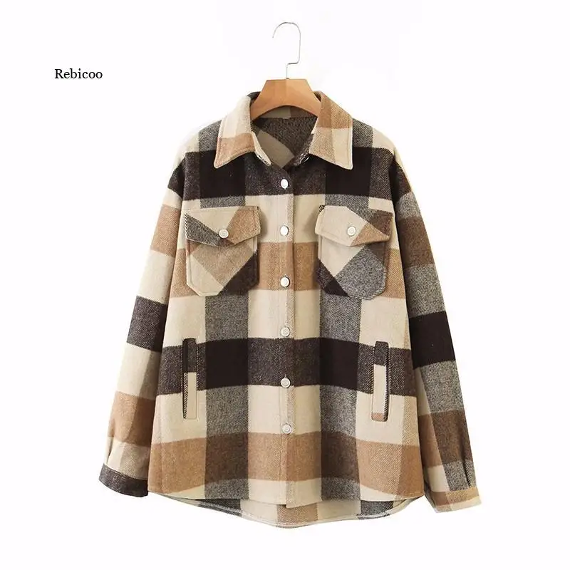 Куртка женская в клетку с карманами, винтажная Свободная куртка с о...