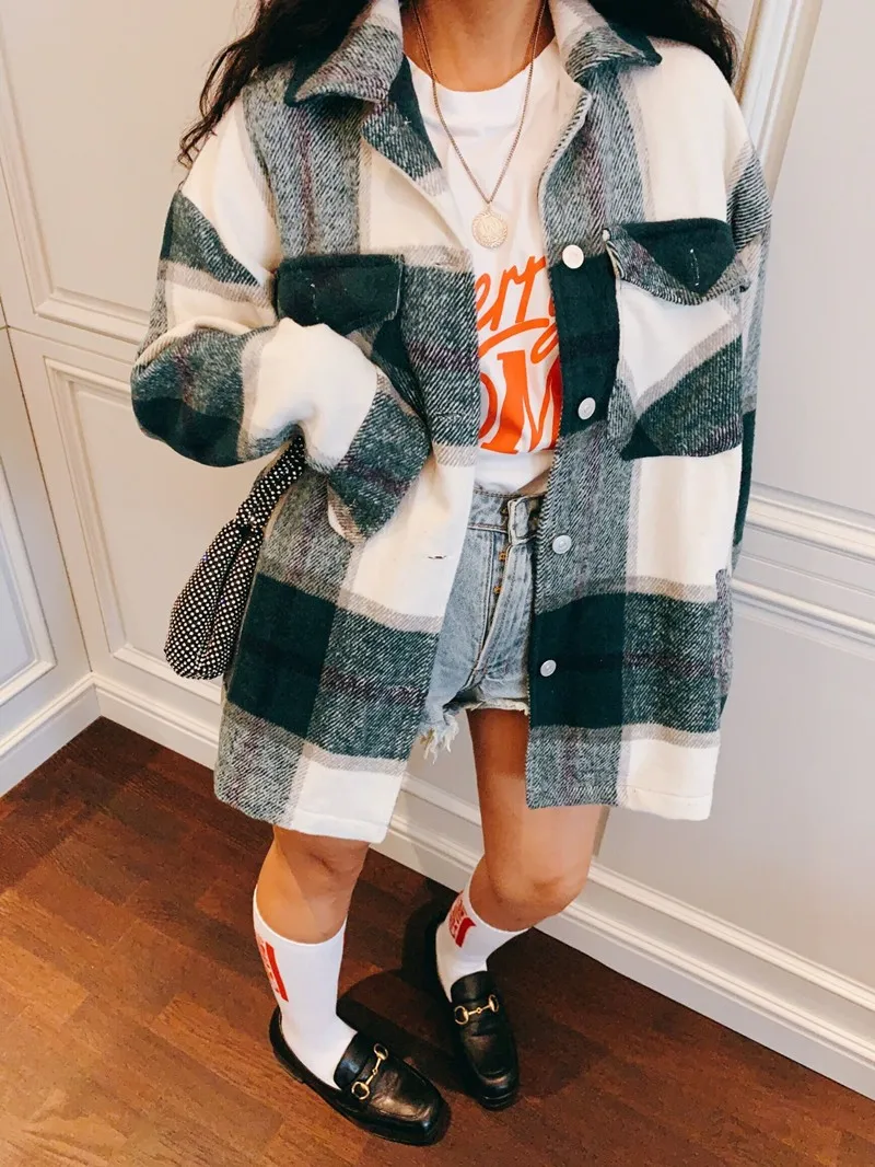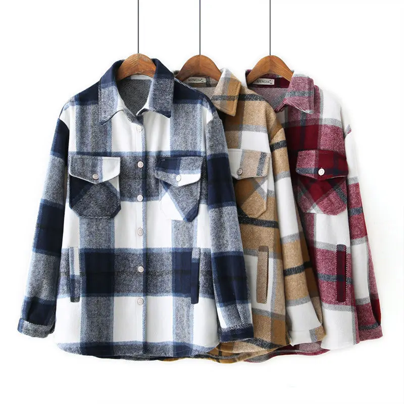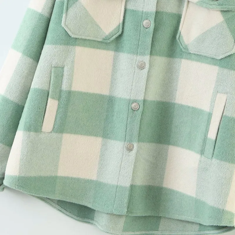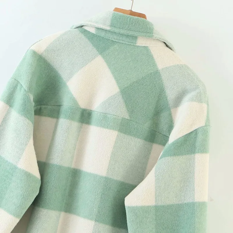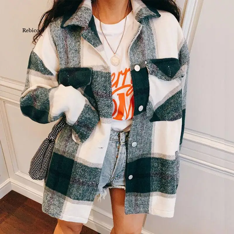 Осенняя куртка, женская модная Толстая куртка в розовую и зеленую клетку, женская рубашка, винтажное пальто, весенние повседневные женские топы, верхняя одежда