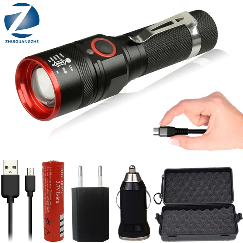 Litwod Z251511 XM-L T6 4000lm с микро-флеш-накопителем USB для работы с Перезаряжаемые Led фонарь с приближением, 3 режима фонарь для 18650 с USB кабелем для кемпинга