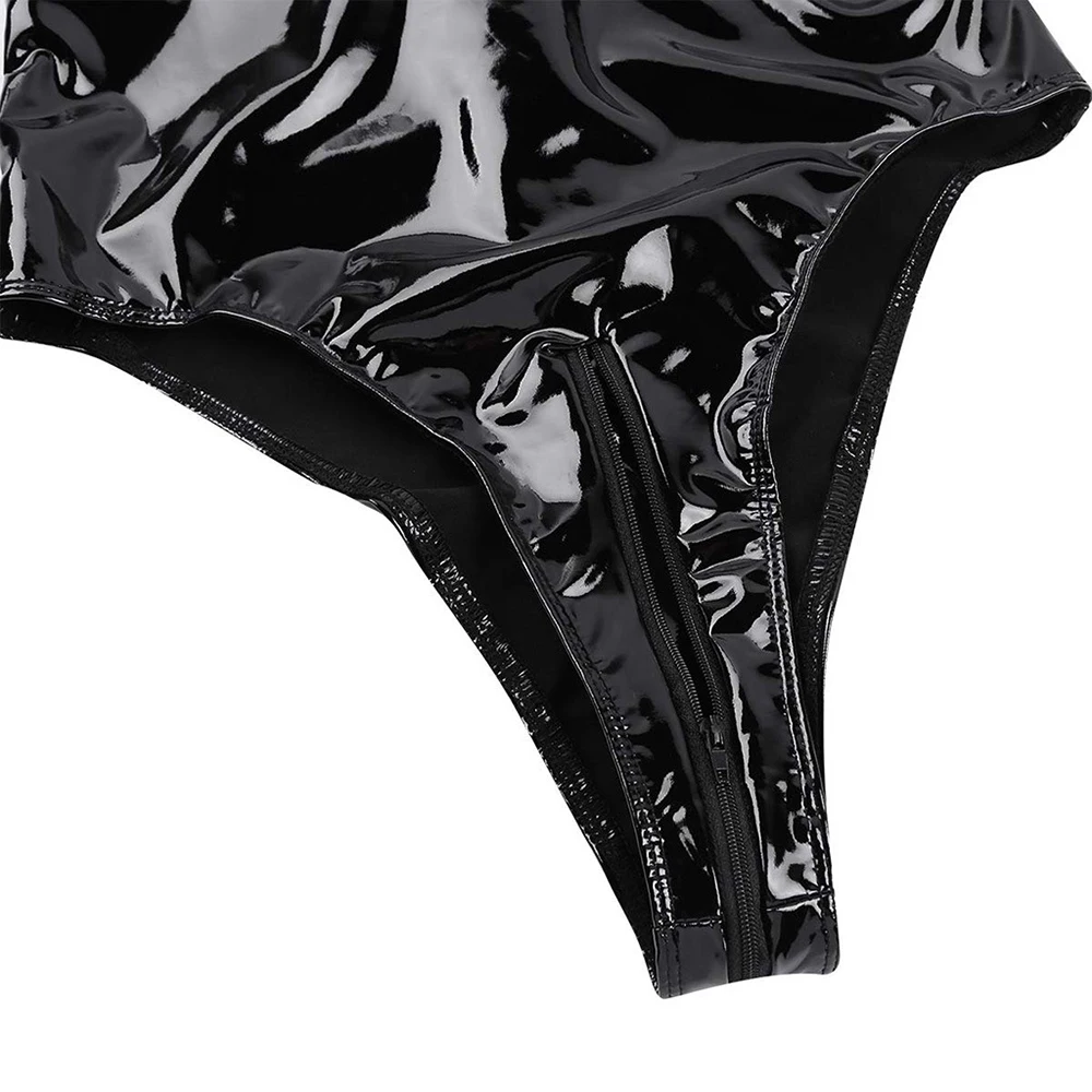 Сексуальное нижнее белье, боди, женское открытое латексное нижнее белье на молнии, бюстгальтер пуш-ап из лакированной кожи, цельный сексуальный боди, сексуальный костюм