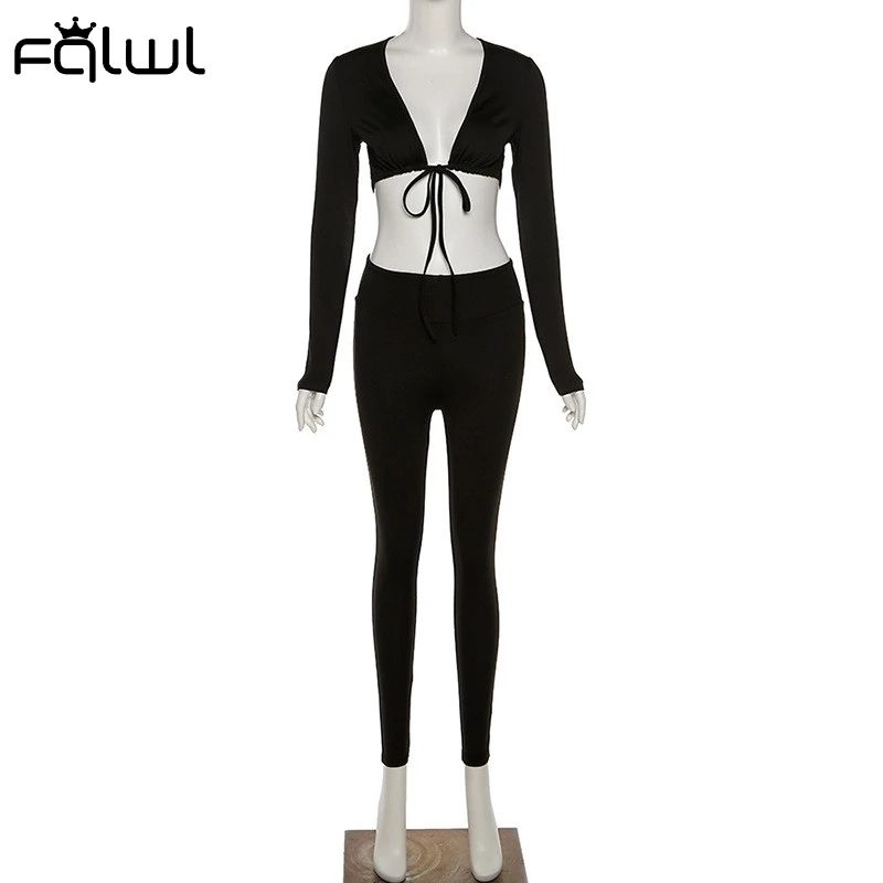FQLWL летние сексуальные белые черные комплекты из 2 частей женские наряды 2021 Corp Топ спортивный костюм женские брюки леггинсы облегающие подходящие комплекты