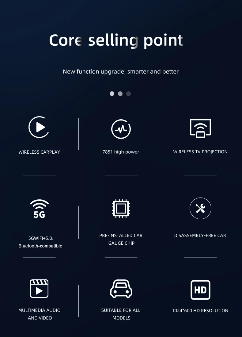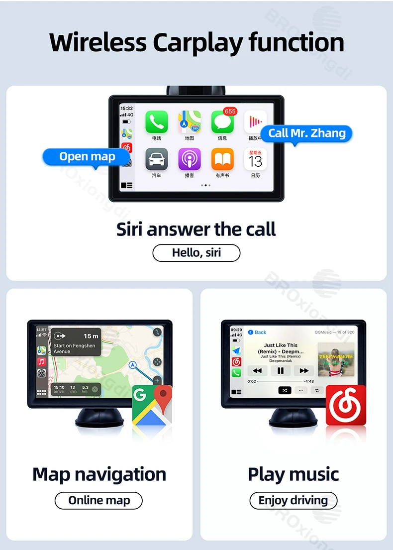 Беспроводная система CarPlay in-car позволяетБезопасно оставайтесь в вашем автомобиле Используйте iPhone для синхронизации мобильного телефонаПриложения в фокусе синхронизируют навигацию вашего телефонаПриложения во время вождения, музыкальное программное обеспечение, создание телефонаЗвонки, голосовые сообщения Siri, отправка и получение сообщений,И т. Д. Вы просто Подключите свой iPhone и перейдите