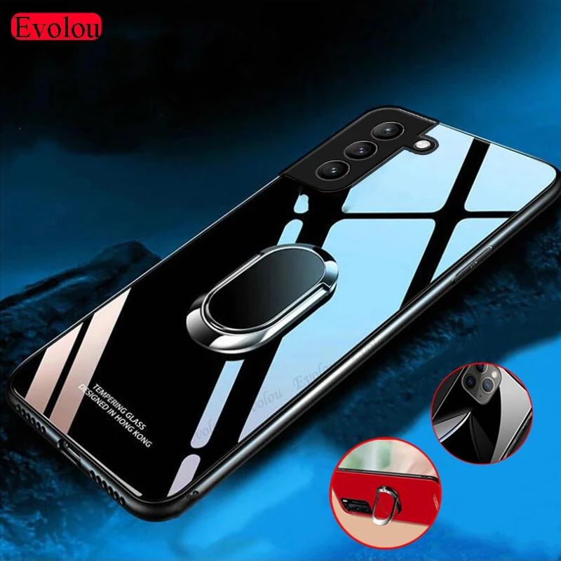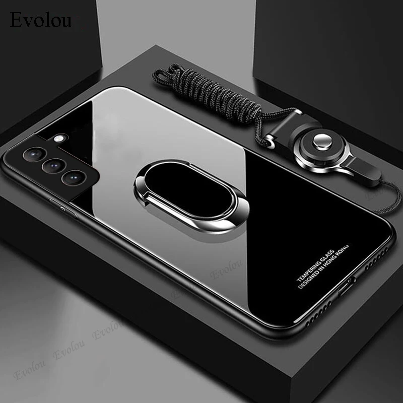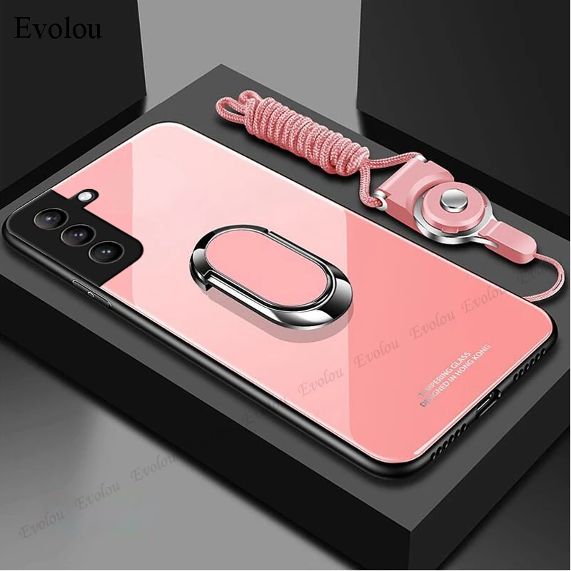 Чехол с магнитным кольцом-держателем для Samsung S21 FE S21, ультра закаленное стекло, мягкая рамка, чехол с ремешком для Samsung Quantum 2 A22 F62 A82