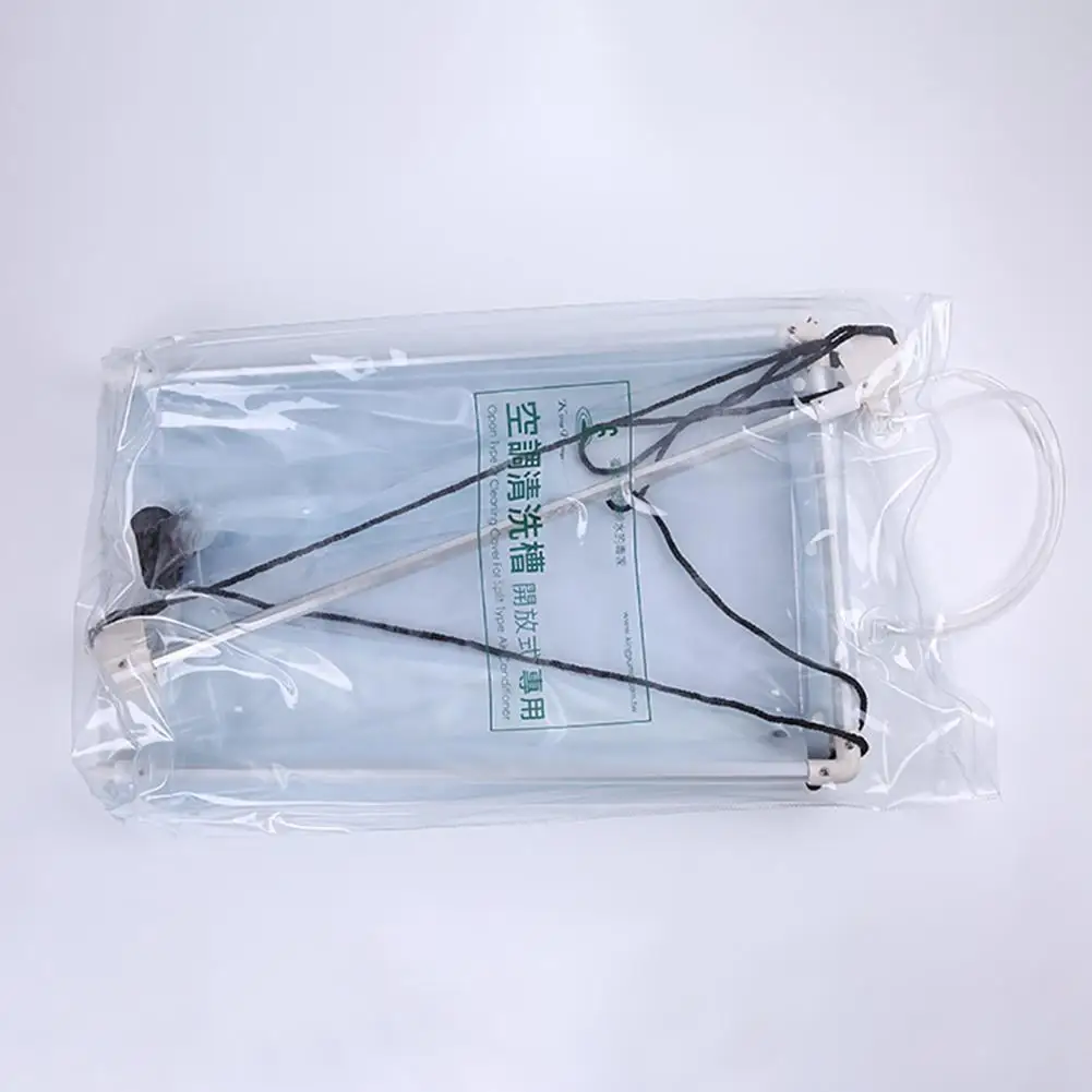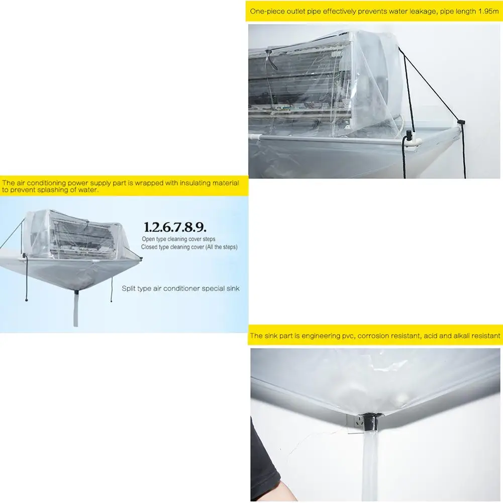 Подходит для трех с половиной Сплит внутренний КондиционерНезависимо от того, как вы распыляете его, вода останется в немЛегкий, практичный и портативныйЦельная конструкция сливной трубы (длина 195 см)Легкий и удобный дизайнМожет быть непосредственно очищен с помощью алюминиевого ребра чистящего средстваМаксимальная ширина фиксированного телескопического кронштейна кондиционера составляет 128 смРегулируемый шнурок до 82 см/32,28 дюймаОколо 122 см (ширина) x35,5 см (длина) x21 см (глубина)/48,03*13,98*8,27 дюймаОбщий вес: около 1,35 кгХарактеристики:Материал: ПВХ инженерный пластикРазмер:1. Открытый тип (около):Максимальная длина фиксированной телескопической опоры составляет 128 см/50,39 дюймаМаксимальная Регулируемая длина 82 см/32,28 дюймаДлина Слива 195 см/76,77 дюйма2. Тип потолка (около):Максимальная площадь очистки 125*125 см/49,21*49,21 дюймаМаксимальная Регулируемая длина 82 см/32,28 дюймаДлина Слива 240 см/94,49 дюйма3. Закрытый тип: около 122x35,5x21 см/48,03*13,98*8,27 дюймаШаги установки закрытого типа:1. Сначала откройте крышку для очистки открытого типа и убедитесь, что белый разъем в середине подключен и зафиксирован.2. Используйте обе руки, чтобы вытянуть кронштейн и подвесить над Сплит-кондиционером на обоих углах, необходимо установить и надежно зафиксировать пластиковую доску (кнопку) в задней части кондиционера.3. Нажмите в форме "C опорный кронштейн" закрытого типа чистящей крышки к отверстию на пластиковой доске, при правильном вставке вы услышите звук "ka".4. Поместите крышку закрытого типа на опорный кронштейн с-образной формы, вставьте эти две маленькие прозрачная пленка с обеих сторон в заднюю часть кондиционера.5. Вставьте большой размер прозрачной пленки в заднюю часть кондиционера и затяните чистящую крышку, отрегулирув стоппер для троса.6. Вытяните крышку открытого типа, две пробки для каната, которая находится на стене, пока она не находится рядом с нижней частью кондиционера с обеих сторон.7. Не забудьте оставить зазор, чтобы вставить прозрачную пленку в заднюю часть кондиционера.8. Вставьте прозрачную пленку в нижнюю часть кондиционера.9. Наконец вытяните вверх пробки для каната вокруг четырех углов до того же уровня, чтобы закончить установку.Упаковочный лист: