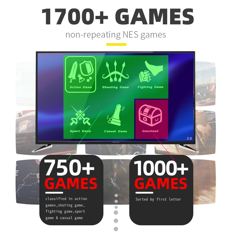 Беспроводная портативная ТВ-видео консоль, 2021 USB, 1700 встроенны...