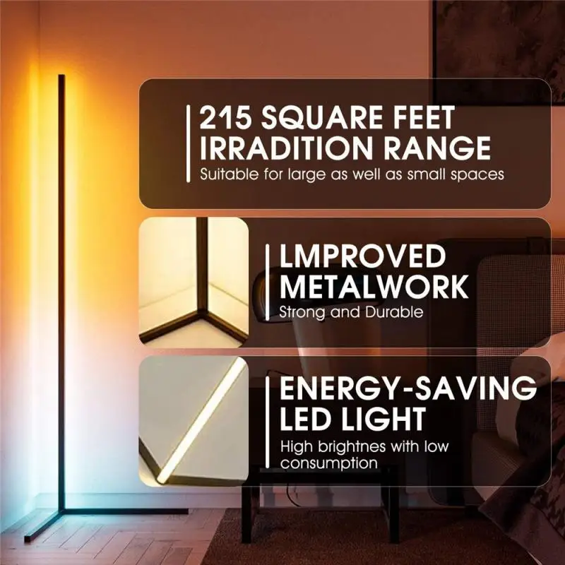 RGB угловая Напольная Лампа с регулируемой яркостью, СВЕТОДИОДНЫЙ цветной угловой светильник с дистанционным управлением, напольные лампы для Великобритании, США, ЕС, светильник для внутреннего освещения