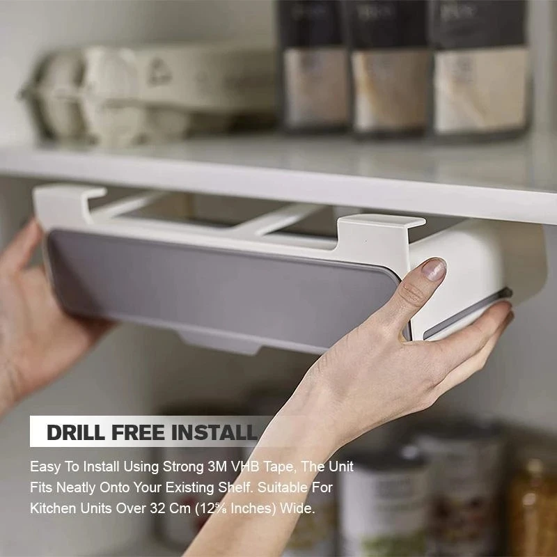 Легко установить с помощью стойким 3м VHB клейкая лента, блок хорошо вписывается на ваш существующий полке. Подходит для кухонных блоков шириной более 32 см (12 ⅝ дюймов).