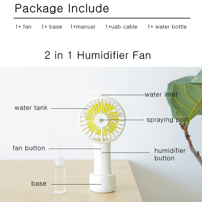 Портативный мини-вентилятор с распылителем воды и USB-зарядкой