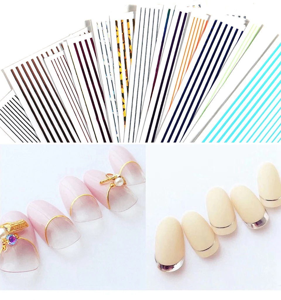 17 цветов, наклейки для ногтей, необычный дизайн маникюра, украшение для ногтей, линейные наклейки для ногтей