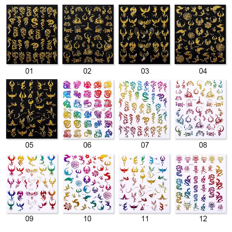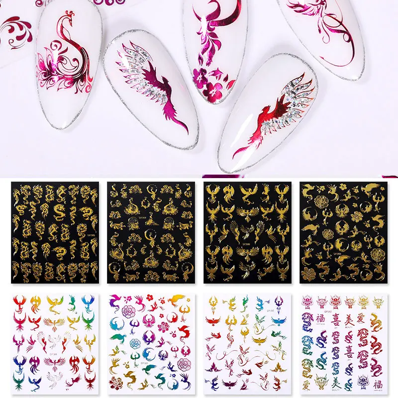 Переводные наклейки дракона для ногтей, красочные самоклеящиеся слайдеры, наклейки для маникюра, декоративные красочные наклейки для ногтей, фольга для ногтей