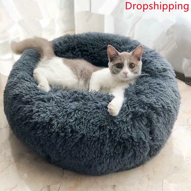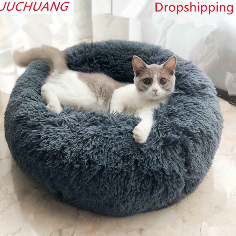 Круглые кошачьи кровати, домик, мягкая длинная плюшевая Лучшая кровать для собаки, товары для домашних животных, подушка, кровать для кошки, коврик для сна, диван