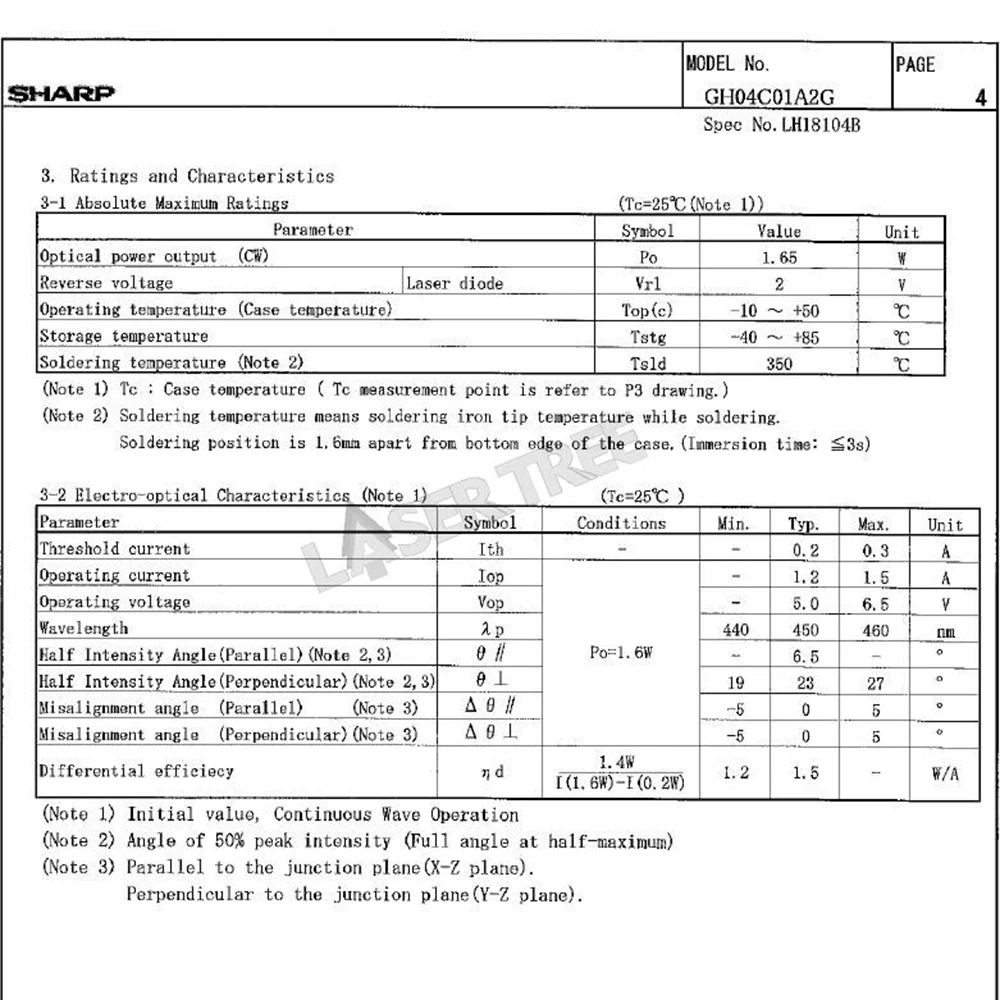 Синий лазерный диод Sharp GH04C01A2G 1,6 нм 1600 Вт МВт