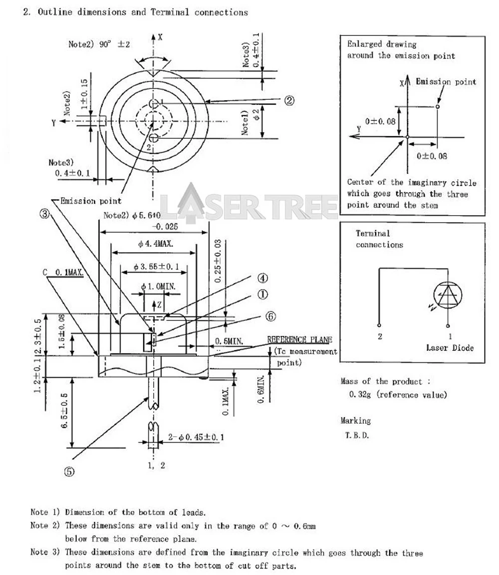 Зеленый лазерный диод Sharp GH05130C2GL, нм, 30 МВт, 35 мВт